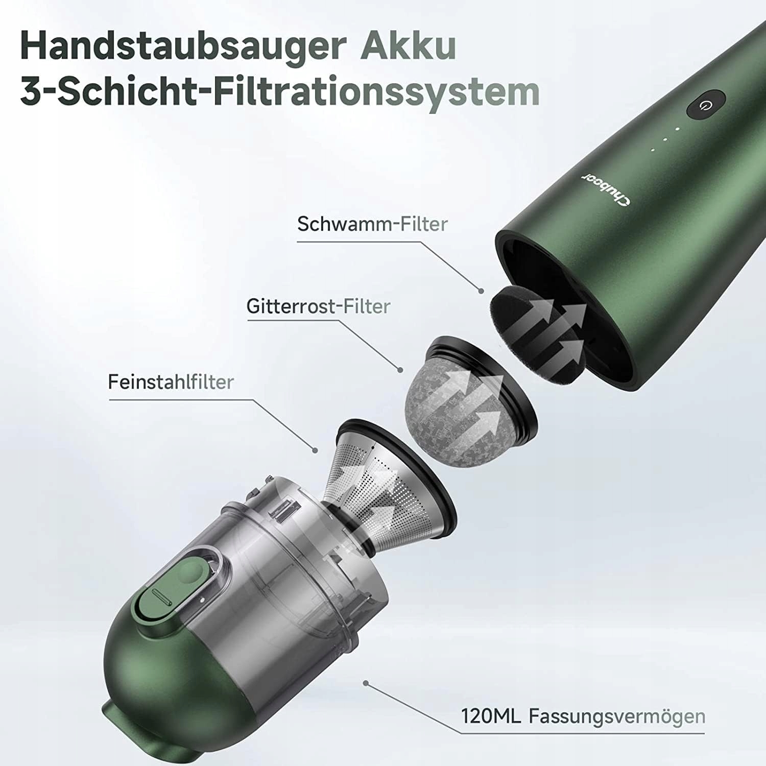 - Унікальний фільтр H13 HEPA Цей міні-пилосос оснащений останнім 3-шаровим фільтром, який можна промивати та переробляти.