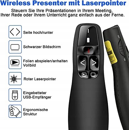 - Бездротовий презентатор Powerpoint поєднує в собі функції лазерної указки та перемикача вікон для презентацій. Його також можна використовувати як покажчик, щоб пограти з вашим котом
