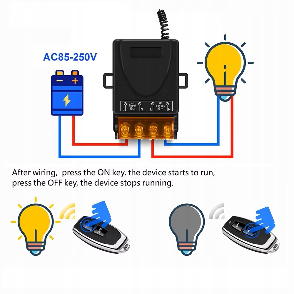 Натисніть кнопку дистанційного керування, відповідне реле увімкнеться та працюватиме, доки не закінчиться час.