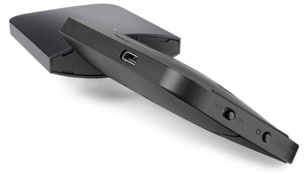 - Поверніть мишу та поверніть голови. Повна функціональність без шкоди для елегантного зовнішнього вигляду пристрою з металевими акцентами, який перетворюється з плоского вказівника з основними функціями миші на зручну повноцінну мишу одним швидким рухом.