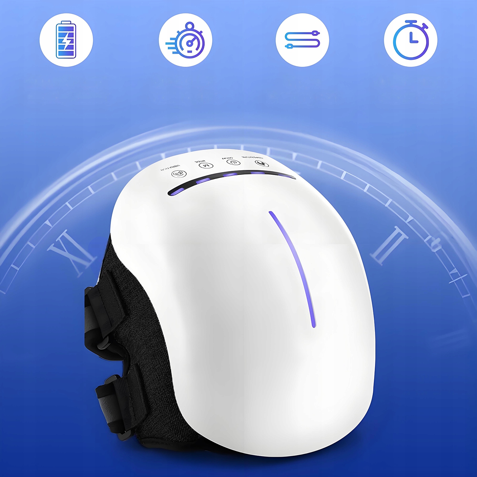 3. Розмістіть масажер навколо коліна. 4. Відрегулюйте ремені для зручності та безпеки.