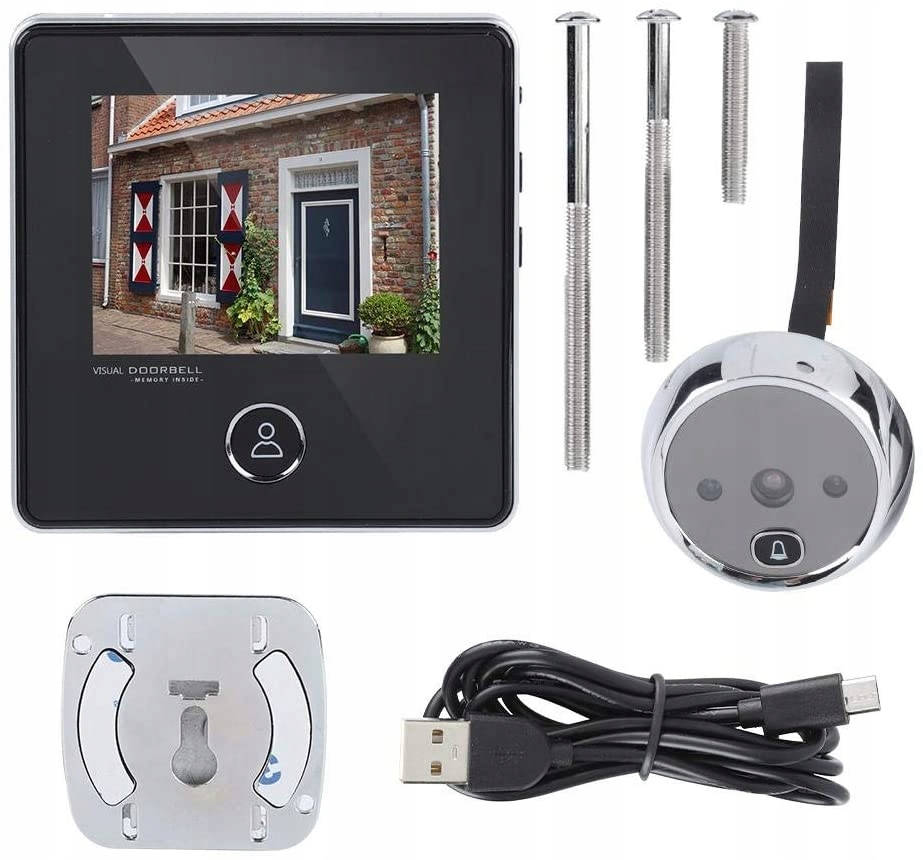 Вбудована літієва батарея на 1200 мАг. Енергозберігаючий дизайн, низьке енергоспоживання, тривалий час очікування. Ширококутний об'єктив 120 градусів. Один мільйон професійних камер високої роздільної здатності забезпечують чіткий огляд деталей за дверима. Інфрачервоне нічне бачення з високою роздільною здатністю. 2 вбудовані інфрачервоні лампи високої яскравості 940 нм. Зовнішній подовжувач зі сплаву цинку. Цинковий сплав міцний і краще запобігає зовнішнім пошкодженням. Антируйнівний дизайн для безпеки вашого дому. Недбале зберігання. Завдяки власній пам'яті не потрібна додаткова карта. Пам'ять вміщує приблизно 75 фотографій. (Коли фотографії заповнені, система видаляє найстаріші фотографії в хронологічному порядку, тобто накладання та обслуговування). Підходить для всіх видів протизламних, композитних, скляних, сталевих матеріалів.