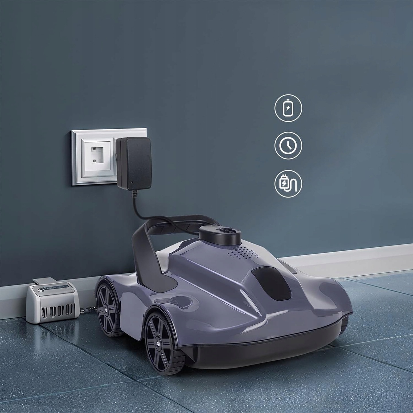 【130 ХВИЛИН РАБОТІ ТА ШВИДКОГО ЗАРЯДЖАННЯ】 Повне заряджання займає лише 3 години та забезпечує до 130 хвилин глибокого очищення. Ідеально підходить для плоских наземних і вбудованих басейнів (без укосів і ступенів), площею до 100 м². Примітка: не підходить для похилих або пейзажних басейнів.