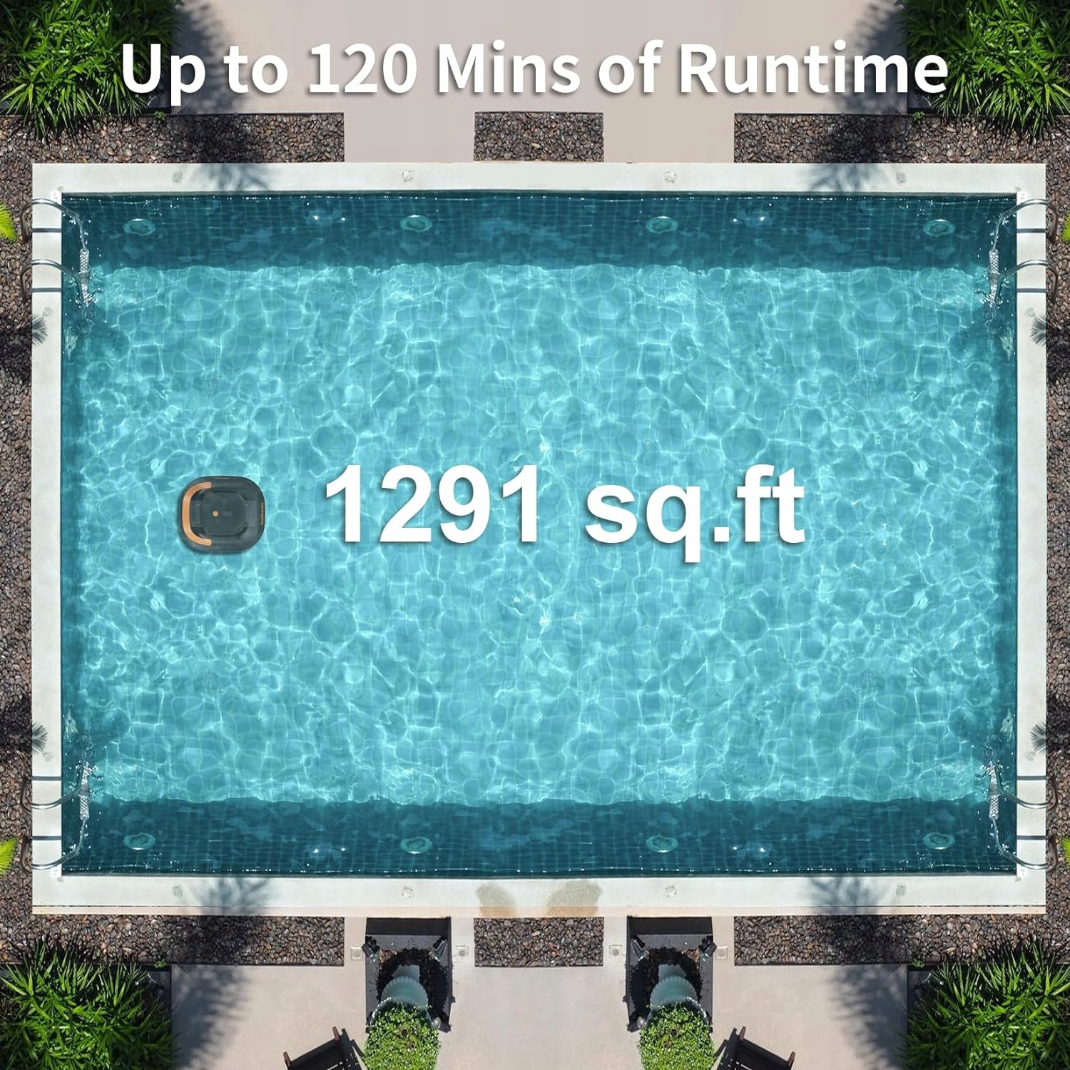 Бездротовий робот для басейну: робот для басейну CoasTeering оснащений потужним акумулятором ємністю 4000 мАг, що дозволяє йому працювати протягом 120 хвилин. Всього за 2,5 години він повністю заряджається і гарантує, що ваш плоский басейн до 120 м² завжди виглядатиме як новий