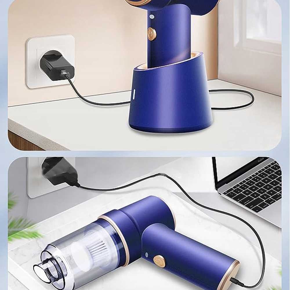 - Електрична повітродувка та 3-дюймовий вакуумний очищувач має акумулятор на 3600 мАг, який можна зарядити кабелем Type-C, що забезпечує близько 20-30 хвилин роботи та 4-4,5 години використання після повного заряду. >