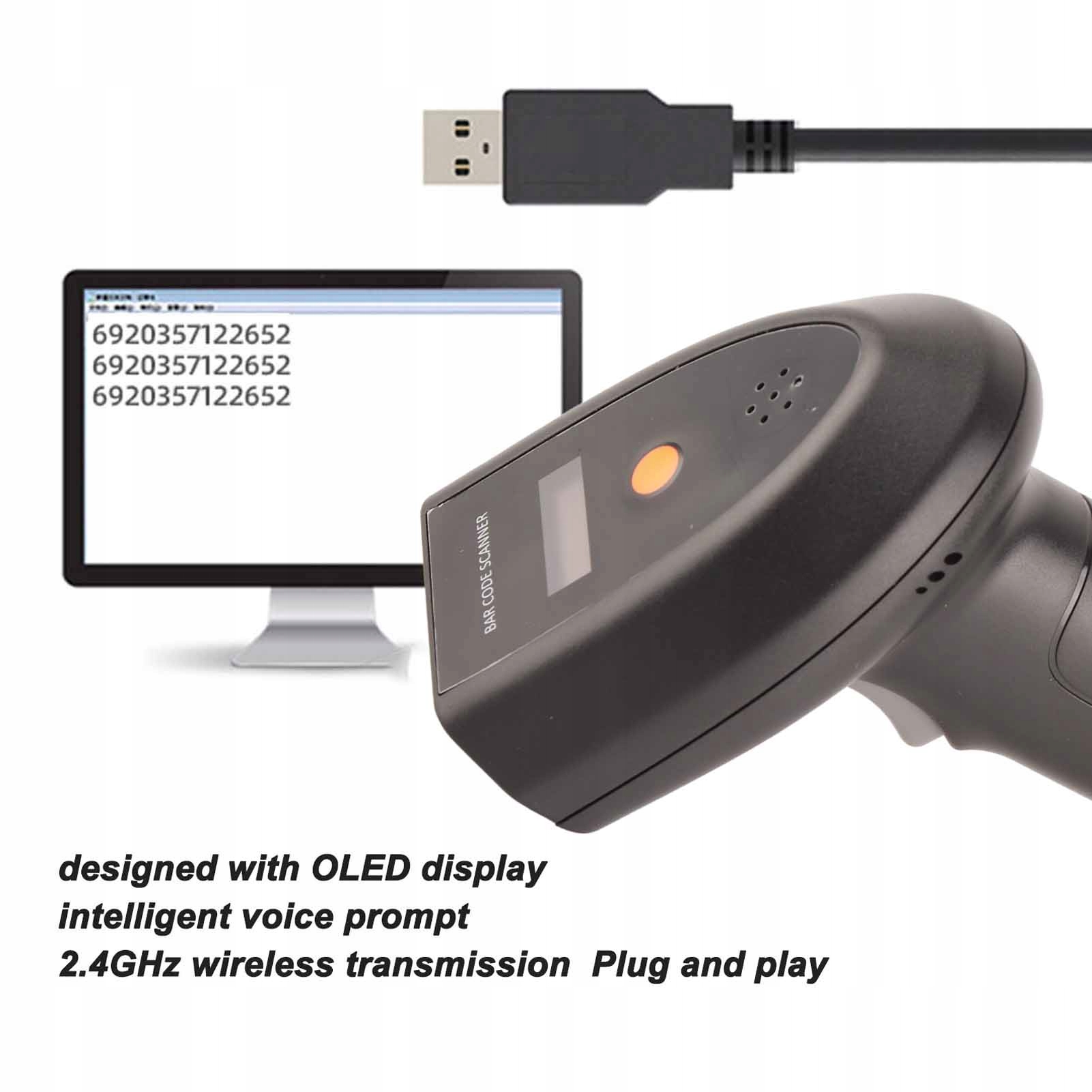 Бездротовий сканер штрих -коду OLED -дисплей 2,4 ГГц, якщо