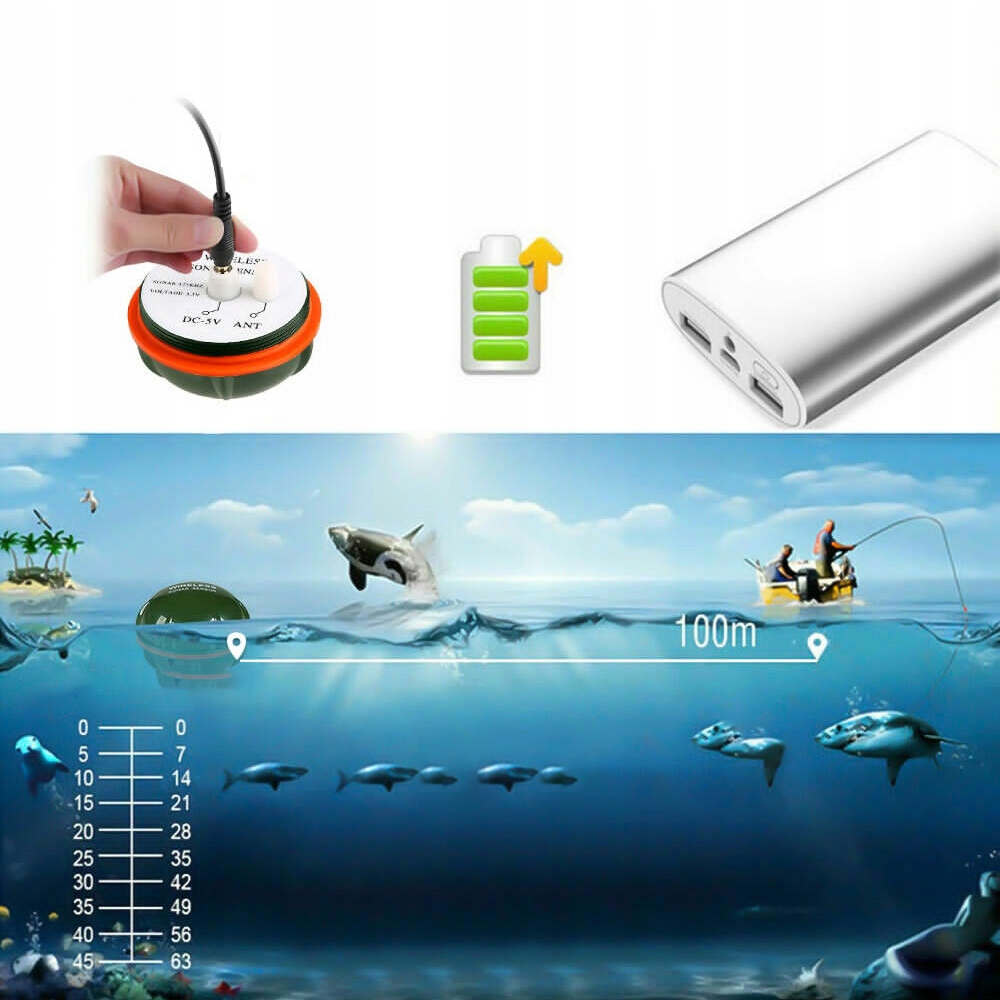 100M БЕЗДРОТОВИЙ РИБОШУК СОНАР ДЕТЕКТОР ТОЧКОВИЙ МАТРИЧНИЙ ЛУНА Ехолот ІЗ ПІДСВІТЛЕННЯМ ДЛЯ ОЗЕРО РІКА МОРЕ