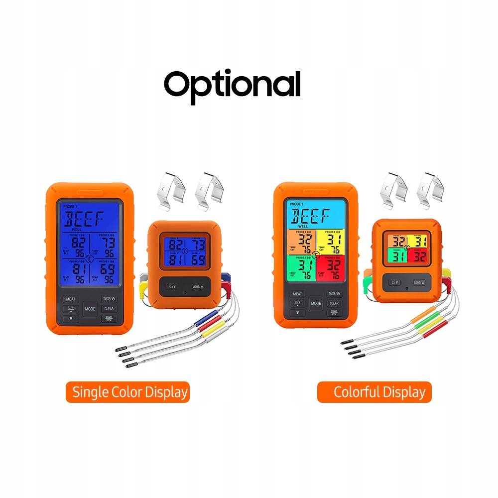 - 4-зондовий цифровий термометр для м’яса забезпечує точне приготування, відстежуючи температуру м’яса на великому РК-екрані. Немає необхідності постійно перевіряти температуру, ви можете встановити бажану температуру і скористатися функцією зворотного відліку. Це настільки зручно, що ви не можете його пропустити!
