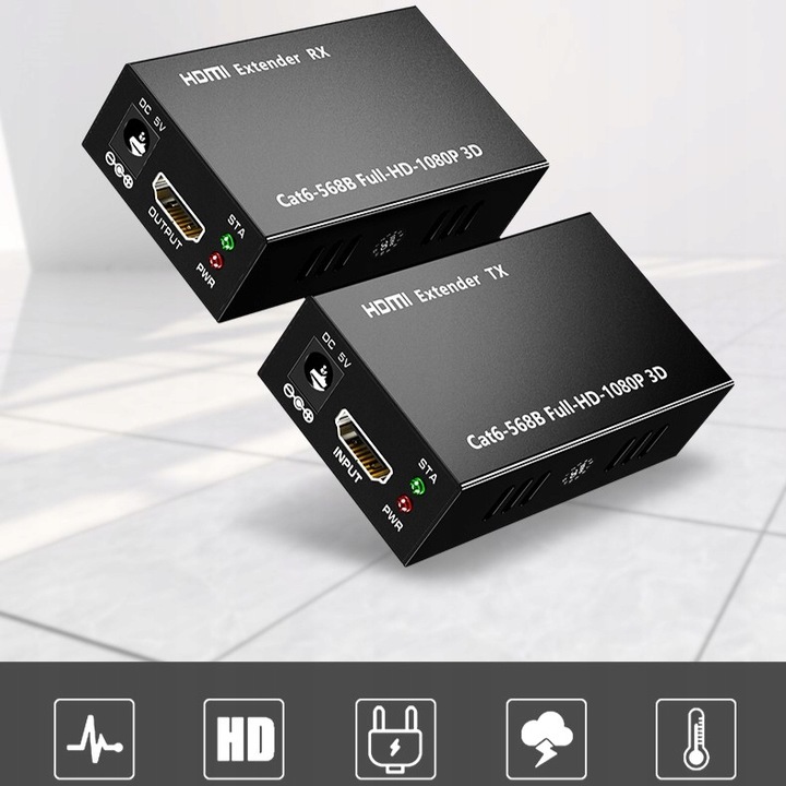 - Роздільна здатність: до 1080P Full HD 30 Гц (3D для кабелю CAT6)