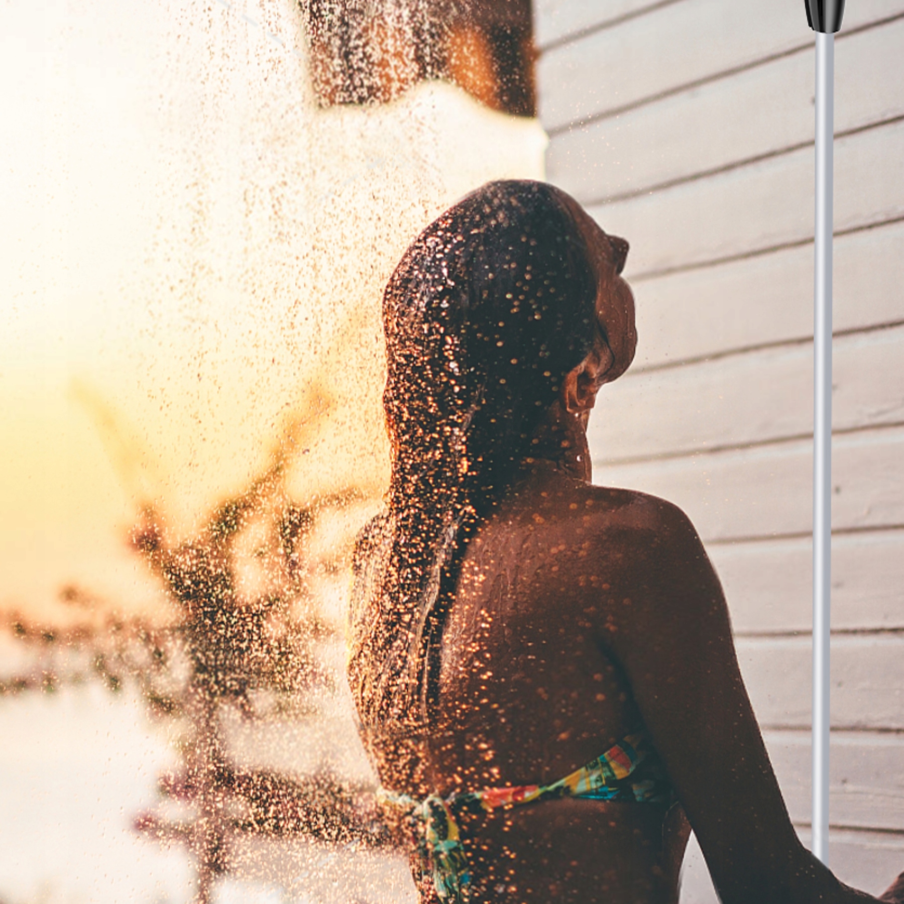 Мобільний душ оснащений J та присоскою для легкого призупинення або кріплення, не потрібні отвори. Шланг довжиною 1,8 м повністю доступний для постійних душових не лише для заходів на свіжому повітрі, таких як подорожі, кемпінг та риболовля, але і для поливу квітів, миття автомобілів, купання домашніх тварин тощо