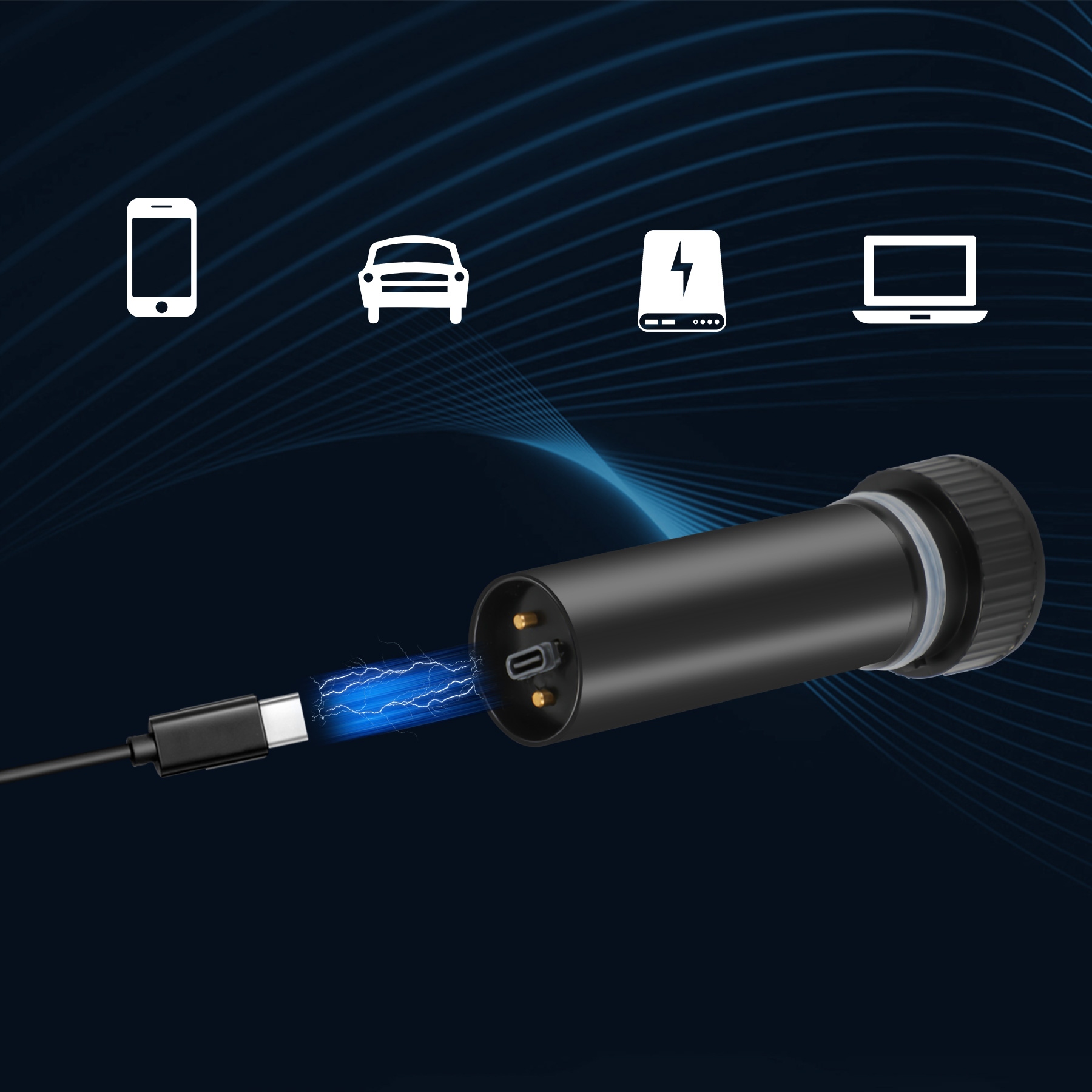 кемпінг -душ поєднує акумулятор і насос в одну одиницю і є водонепроникним IPX8, не тільки покращує водостійкість, але й економить простір та полегшує зберігання та транспортування. Завдяки якому весь насос може бути повністю занурений у воду.