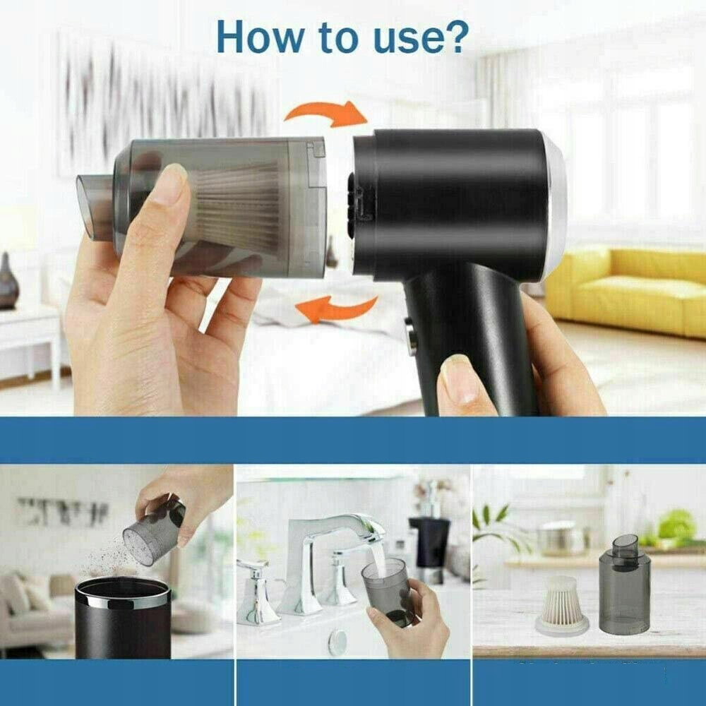 , що підходить для щоденного домашнього завдання для видалення пилу. Двигун із надвисокою потужністю 120 Вт і вихідна потужність забезпечує високу силу всмоктування до 29 000 ПА, тому ви зможете швидко та легко видалити залишки їжі, молекули та будинок домашніх тварин з дому чи автомобіля. Включає кабель зарядки, який може бути підключений до ноутбука, порту зарядки USB в автомобілі, портативне джерело живлення тощо.