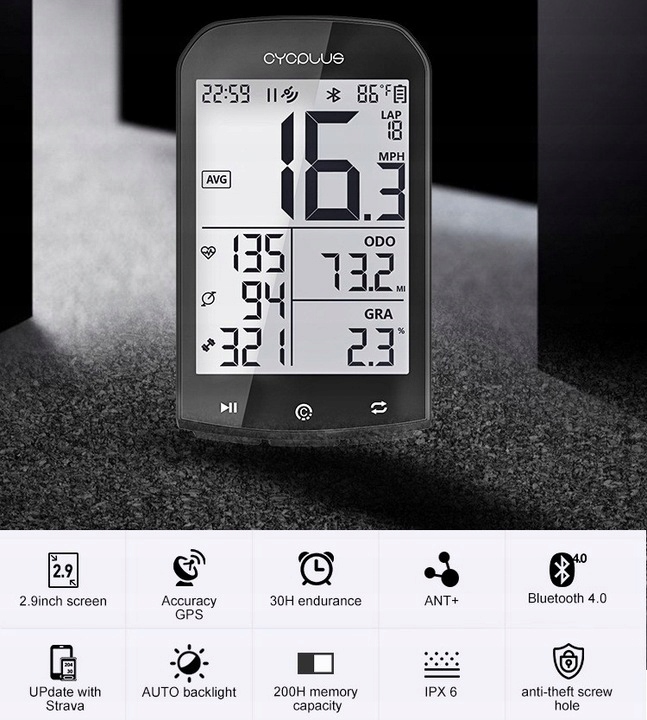 ⚡ У порівнянні з іншими велокомп’ютерами, CYCPLUS має вільний від відблисків, Екран з підсвічуванням (2,9 дюйма), в технології FSTN, який добре видно на сонячному світлі. Підсвічування РК-дисплея вмикатиметься автоматично залежно від часу сходу та заходу сонця в різних часових поясах. Ви можете будь-коли легше та зрозуміліше читати свої дані. Високоякісне загартоване скло стійке до випадкових подряпин нігтем.