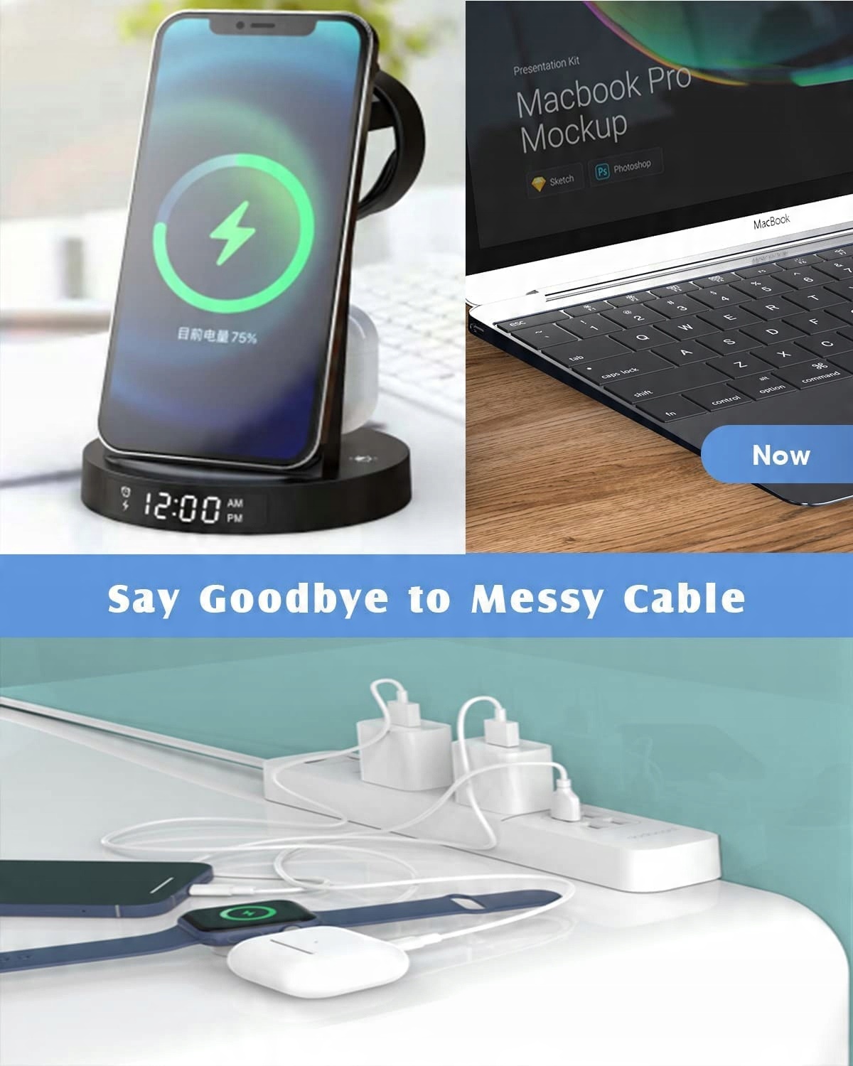 Наша багатофункціональна зарядна підставка має більшу сумісність, ніж звичайний бездротовий зарядний пристрій. Він сумісний не тільки з бездротовою зарядкою Apple-Watch, але й з усіма серіями iPhone. Він сумісний з iPhone 1 3/13 Pro/13 Pro Max/13 mini/12/12 Pro/12 Pro Max/12 mini/11/11 Pro/11 Pro та Apple-iWatch 7/6/5/4/3 / 2/1/SE та AirPods 1/2/3/Pro.