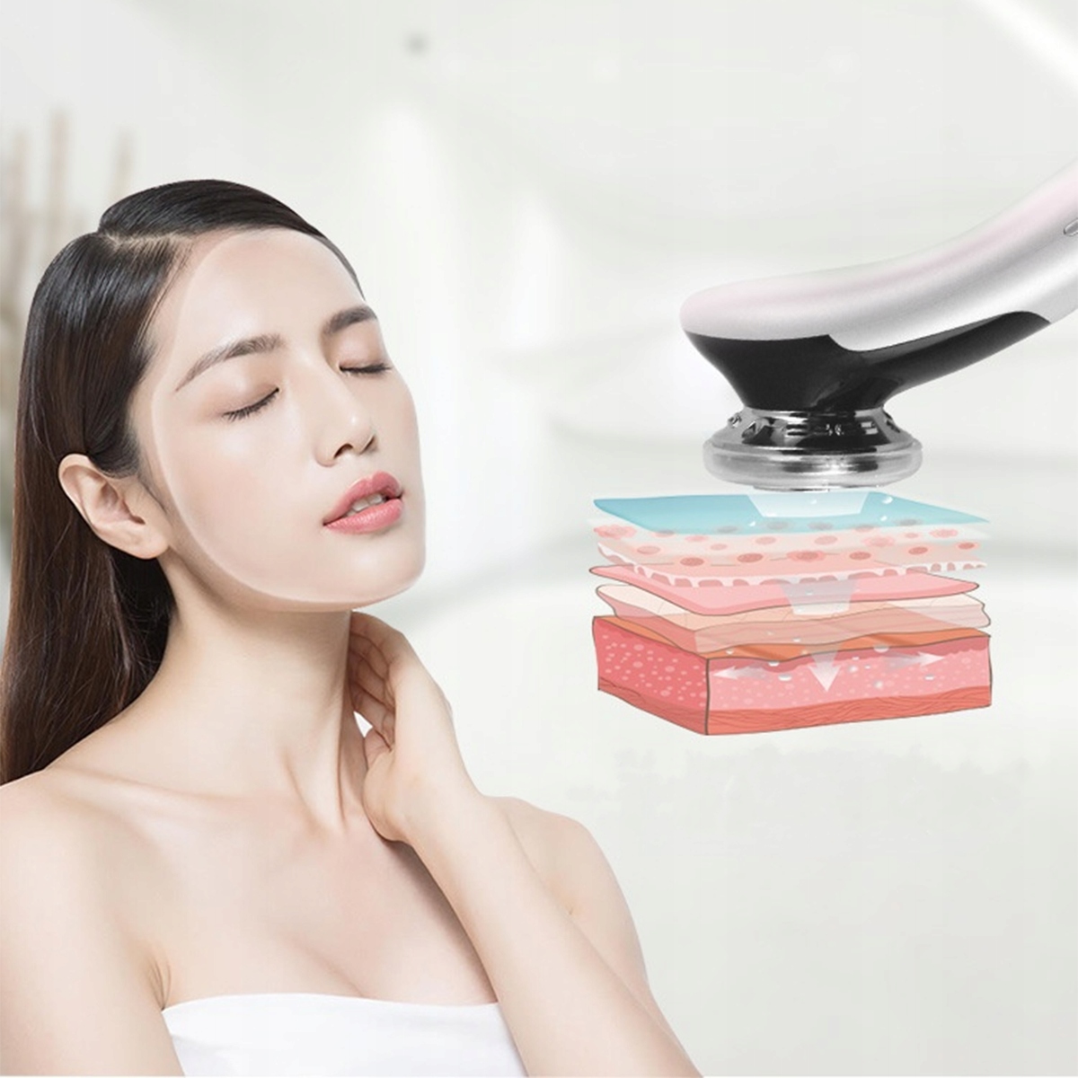 Масажер покращує поглинання косметики, дозволяючи активним інгредієнтам глибше проникати в шкіру. Крім того, він стимулює вироблення колагену та еластину, покращуючи напругу та еластичність шкіри.
