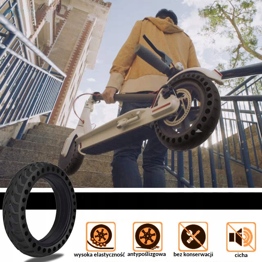Ця шина свердлена, що покращує комфорт водіння та забезпечує краще поглинання ударів порівняно з традиційними суцільними шинами. Шина підходить як для передньої, так і для задньої частини електросамоката. Він відмінно керує в будь-яких умовах, як на асфальті, мокрій поверхні, так і на грунтовій дорозі.