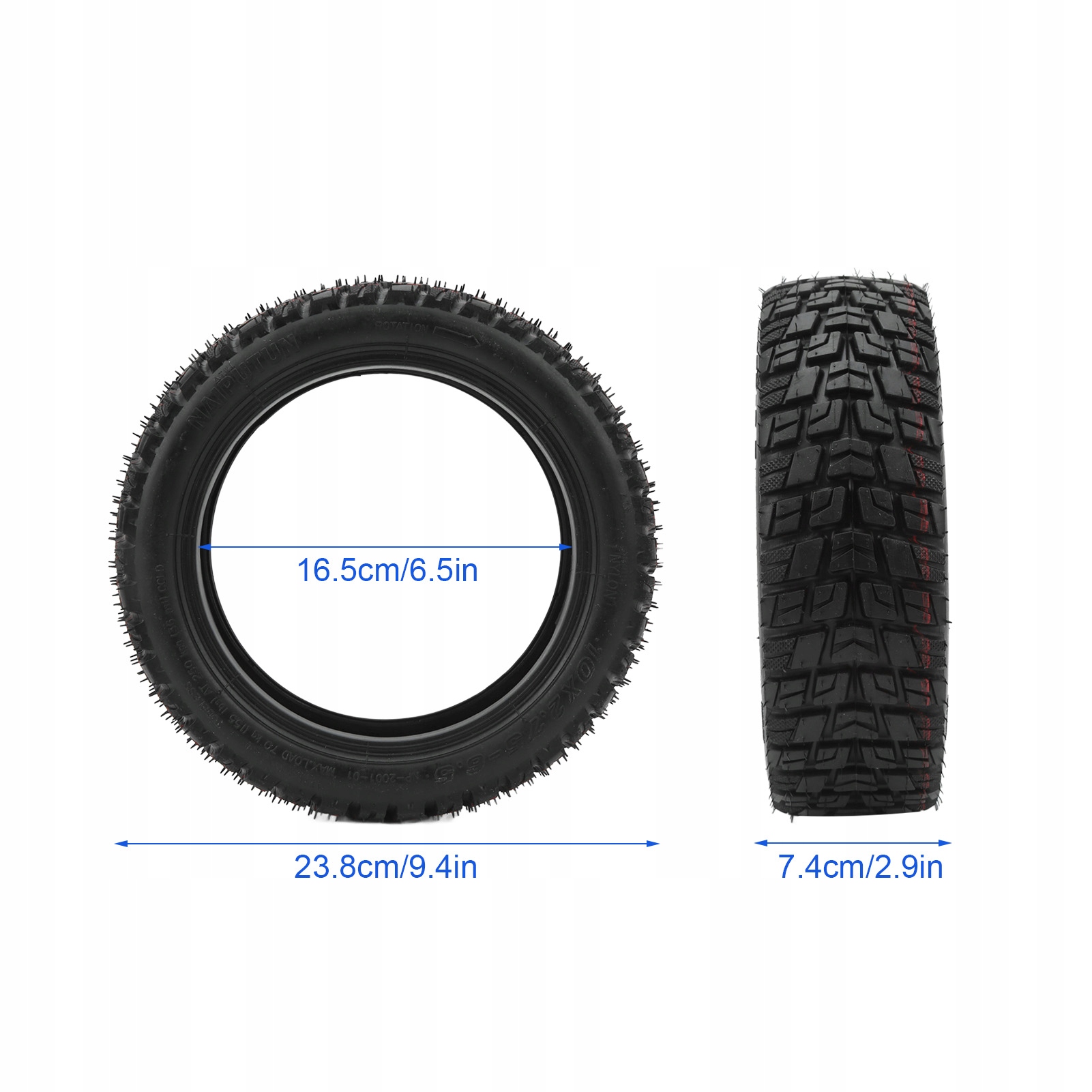 3. Потовщена конструкція та область застосування: Потовщена шина не вимагає проколу. Підходить для електросамоката з шиною 10x2,75-6,5.