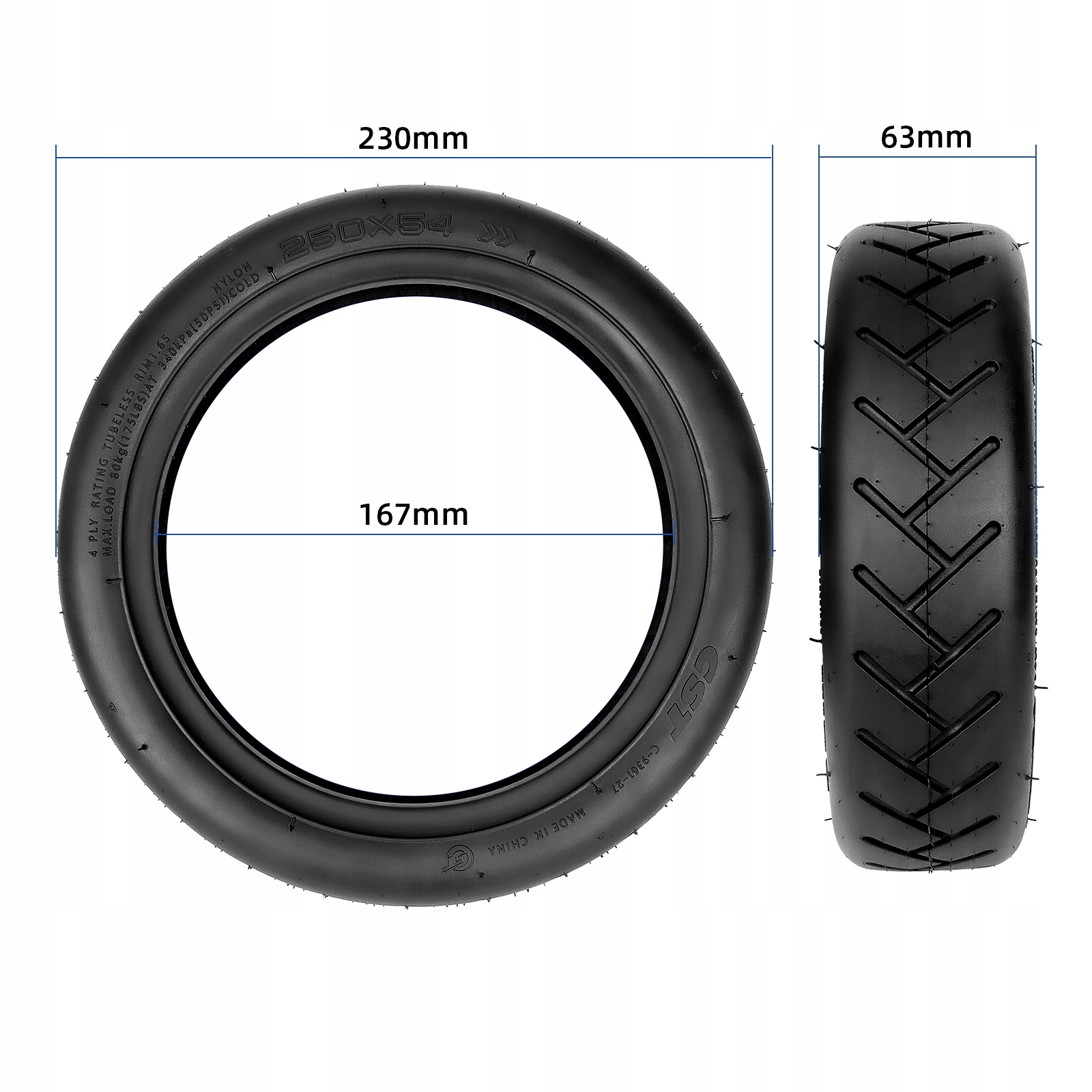 Безкамерна шина 250x54 CST з гелем для Xiaomi 4 Pro / 4 Lite