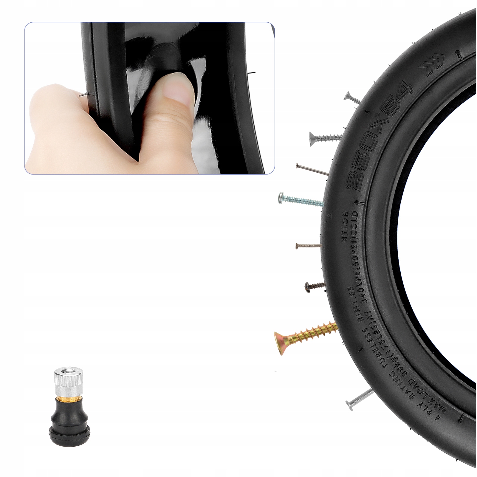 Безкамерна пневматична шина 250x54 з гелем + клапаном для електросамоката