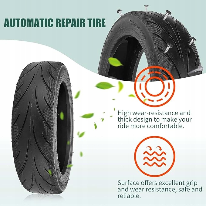 Шина має здатність до самовідновлення! У разі проколу цвяхами або гострим камінням рана діаметром менше 5 мм може бути автоматично відремонтована герметиком, забезпечуючи набагато безпечнішу поїздку. Вам не доведеться турбуватися про раптові поломки під час водіння!