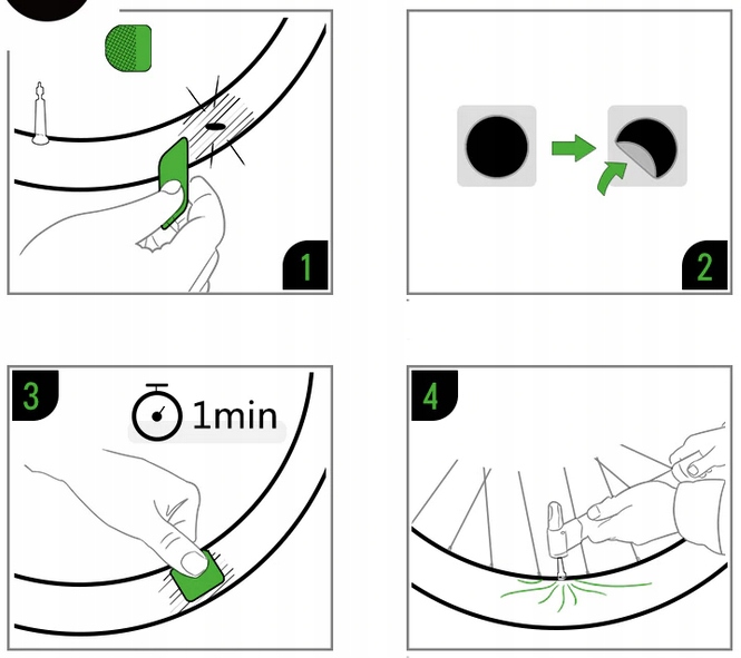 - Розроблено для всіх типових велосипедних камер (натуральний каучук, бутил, поліуретан),