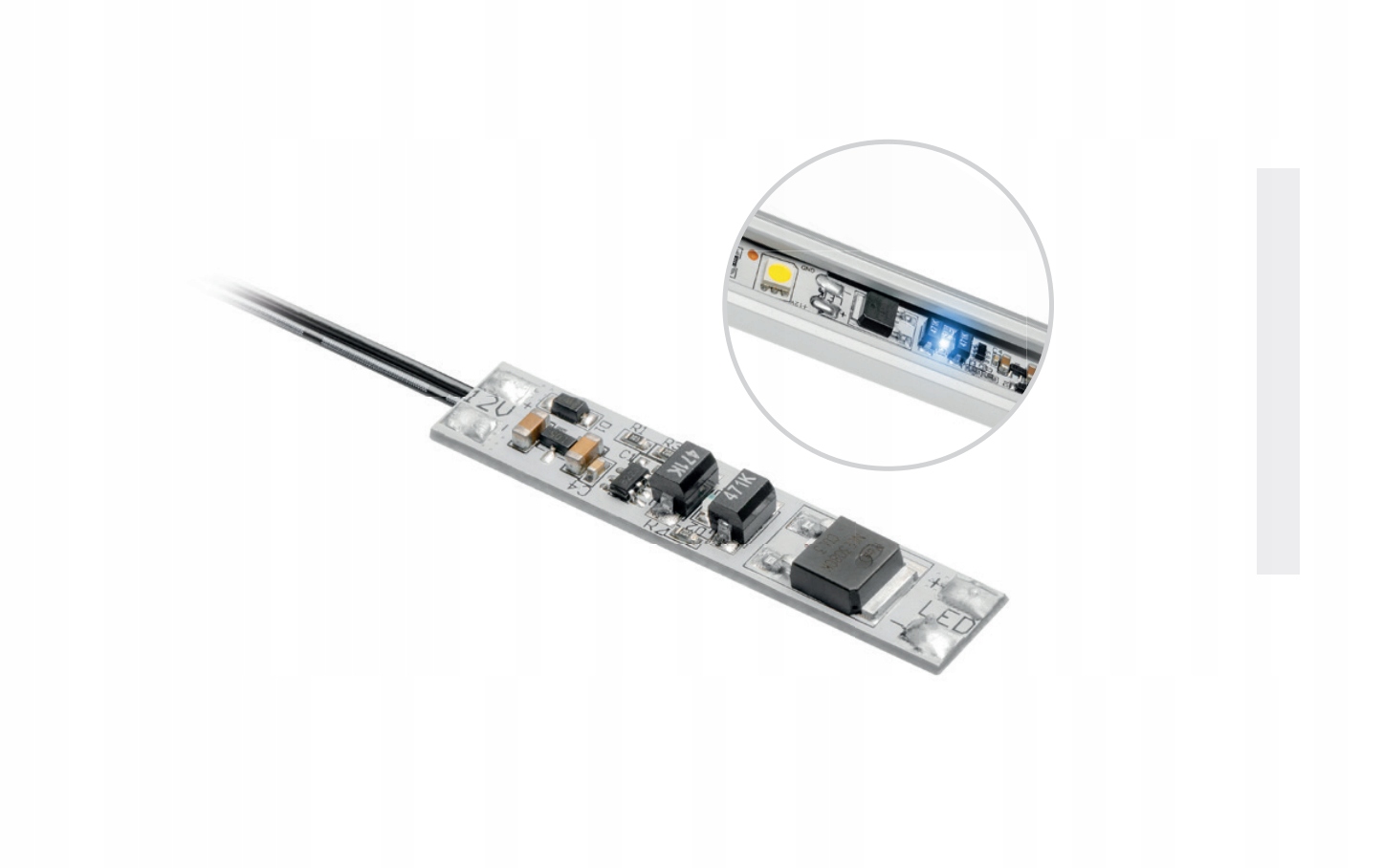 Високоякісний перемикач, який дозволяє вмикати та вимикати світлодіодні стрічки на відстані 5 мм від датчика. Його можна використовувати в усіх типах приміщень і меблів.