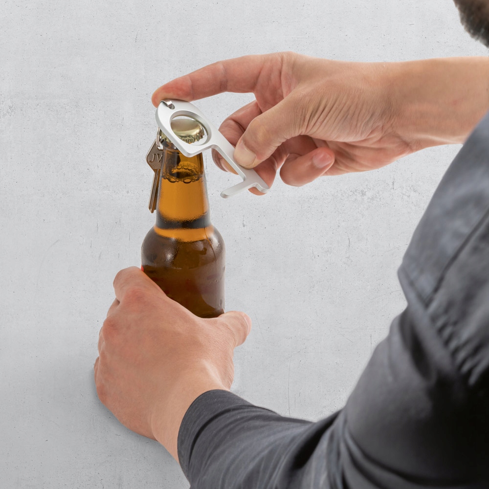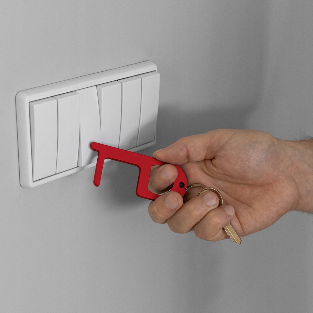 Гігієнічний брелок, повністю виготовлений з алюмінію. Це практичний аксесуар для ключів. Завдяки йому ви уникнете прямого контакту з кнопками, дверними ручками або ручками. І все це для забезпечення найвищого рівня безпеки. - забезпечує БЕЗПЕЧНУ та безконтактну щоденну роботу!