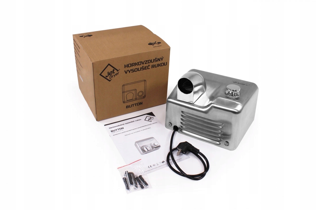 Ефективна сушарка для рук у ґудзиках для сушарки для реактивної сушарки здивує вас швидким сушінням та обертовою насадкою. Завдяки цьому його можна також використовувати для висихання обличчя або як фен.