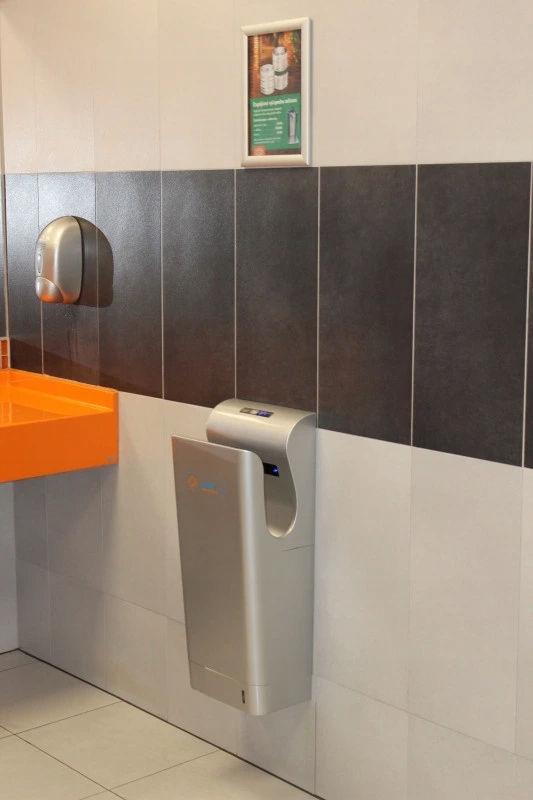 Hygienic Electric Hand Shater Jet Style Style, належить до кожного туалету, лікарні, фармацевтичних закладів, громадських будівель та кампусів, шкіл та закладів харчування для кожного заводу чи компанії, яка якнайбільше піклується про своїх клієнтів та працівників. Стиль ременів сушарки є ергономічно формою та виготовлений у найменших деталях. Більше немає мокрої підлоги, більше паперових рушників не виходить за межі сміття. Крапельна вода не закінчується на підлозі, як у випадку з іншими сушарками, але захоплюється в ємності для крапельки в нижній частині пристрою, до якого ви можете додати певний дезінфікуючий засіб до нейтралізації капаючої води з рук.
