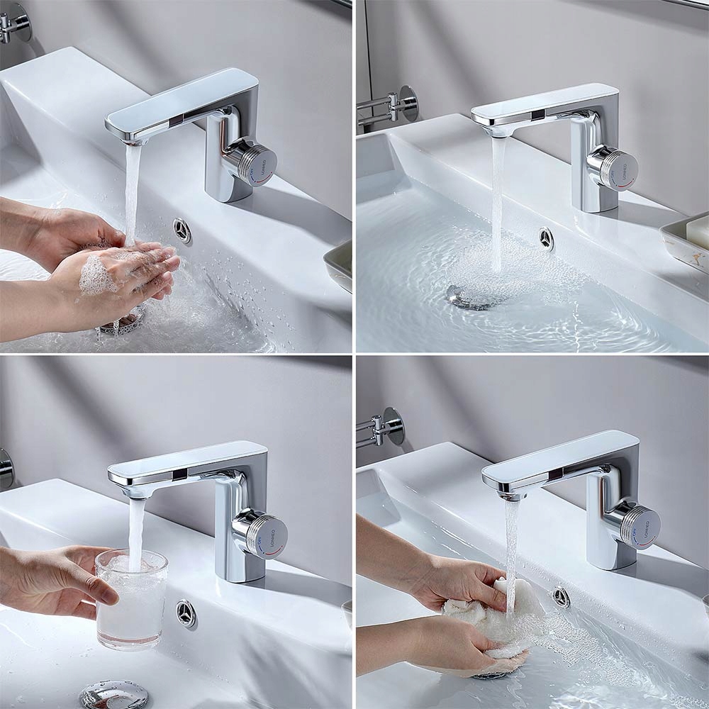 Безконтактний хромований змішувач для раковини з двома сенсорами