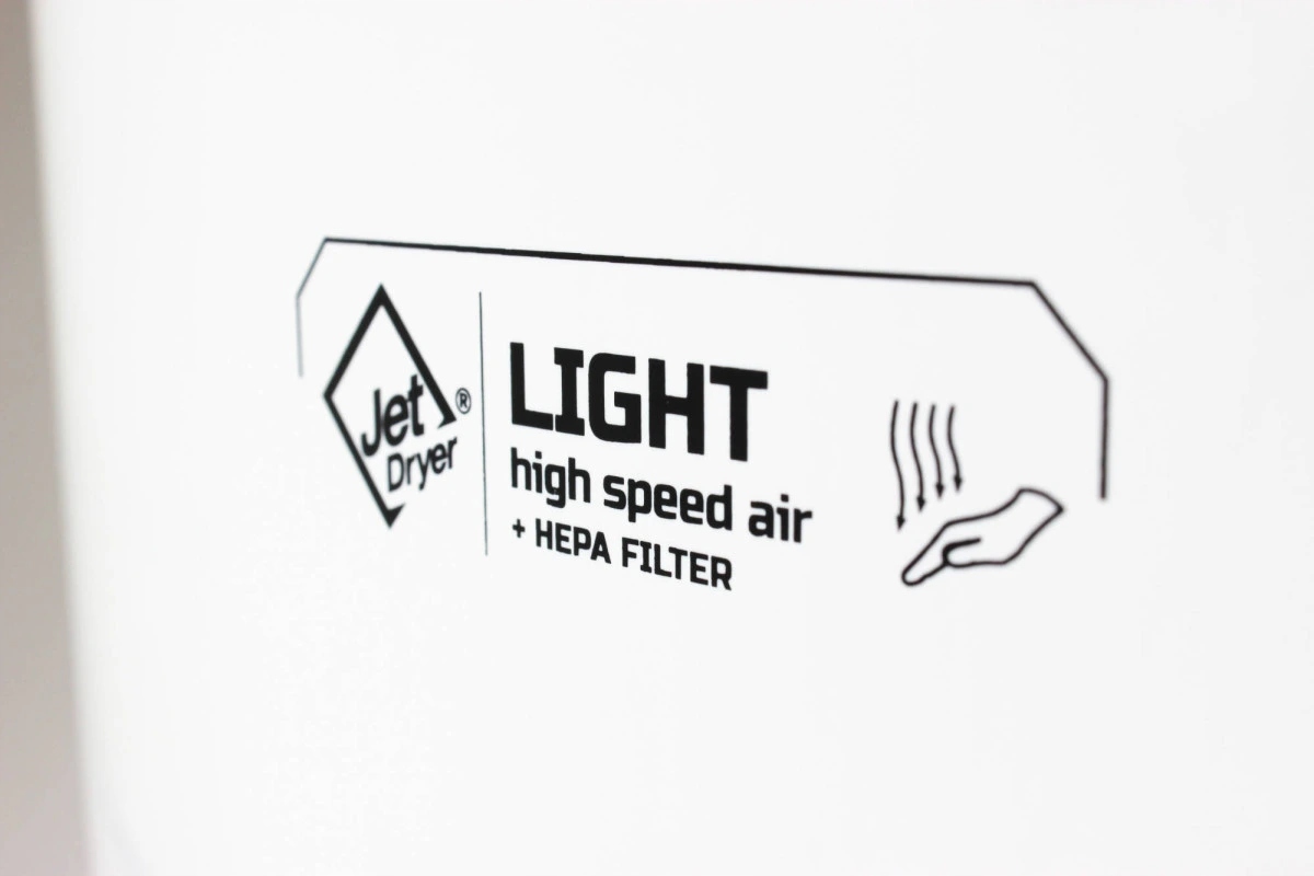 Світло - одна з найменших сушарок потоку від серії Jet Shater. Висота пристрою становить лише 55,6 см, ширина 29,6 см. Сушарка в першу чергу підходить для невеликих ванних кімнат.