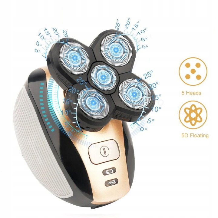 5 незалежно плаваючих головок, точні подвійні леза та високоякісний двигун, 5D-роторна бритва автоматично адаптується до контурів обличчя, шиї та навіть щелепи для комфортне розумне гоління. Закруглені краї плавно рухаються по шкірі для захисного гоління.