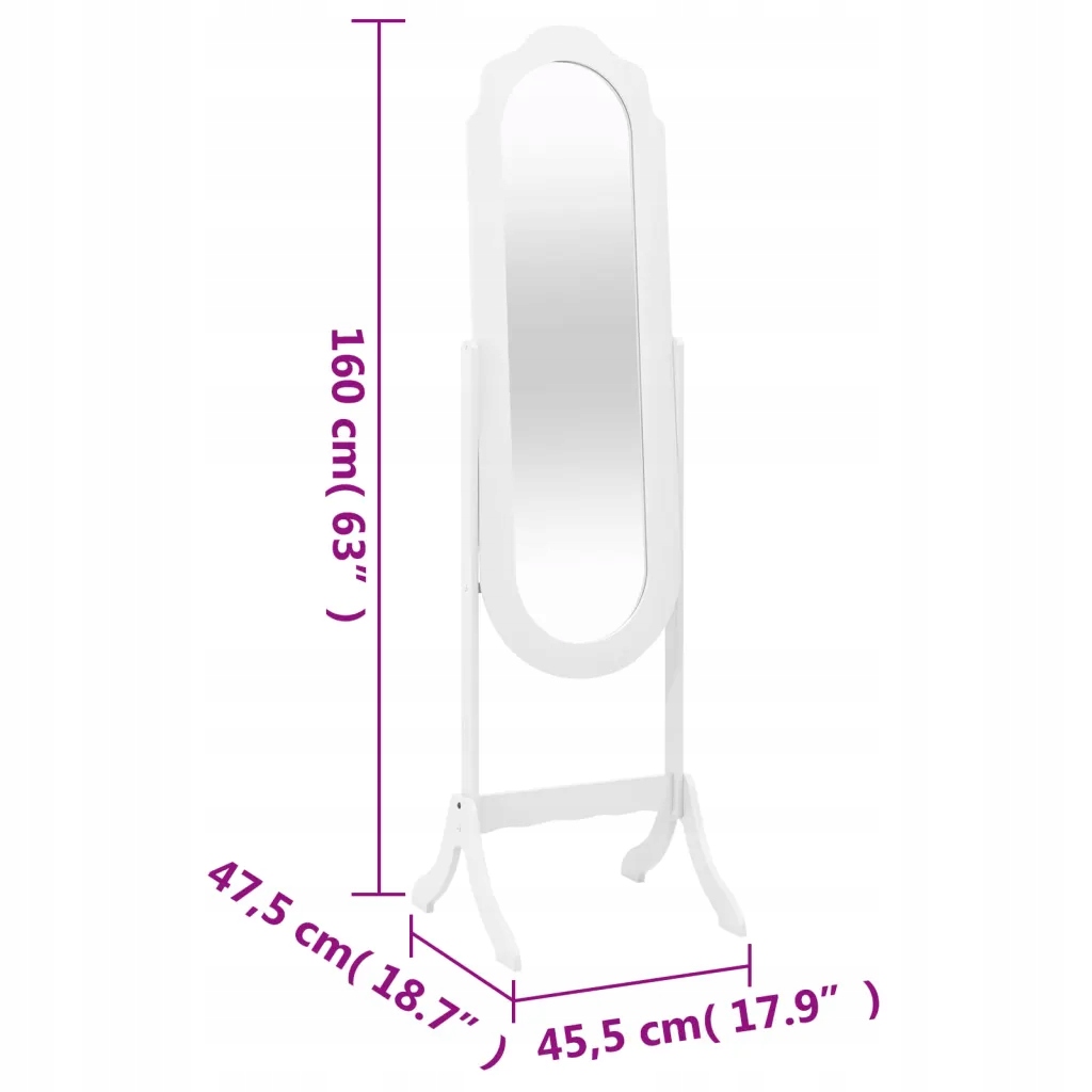 Безкоштовне дзеркало, біле, 45.5x47.5x160 см