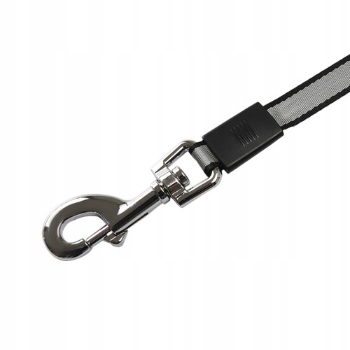 На кінці ремінця є хромований карабін, який полегшує кріплення повідця до нашийника чи збруї.