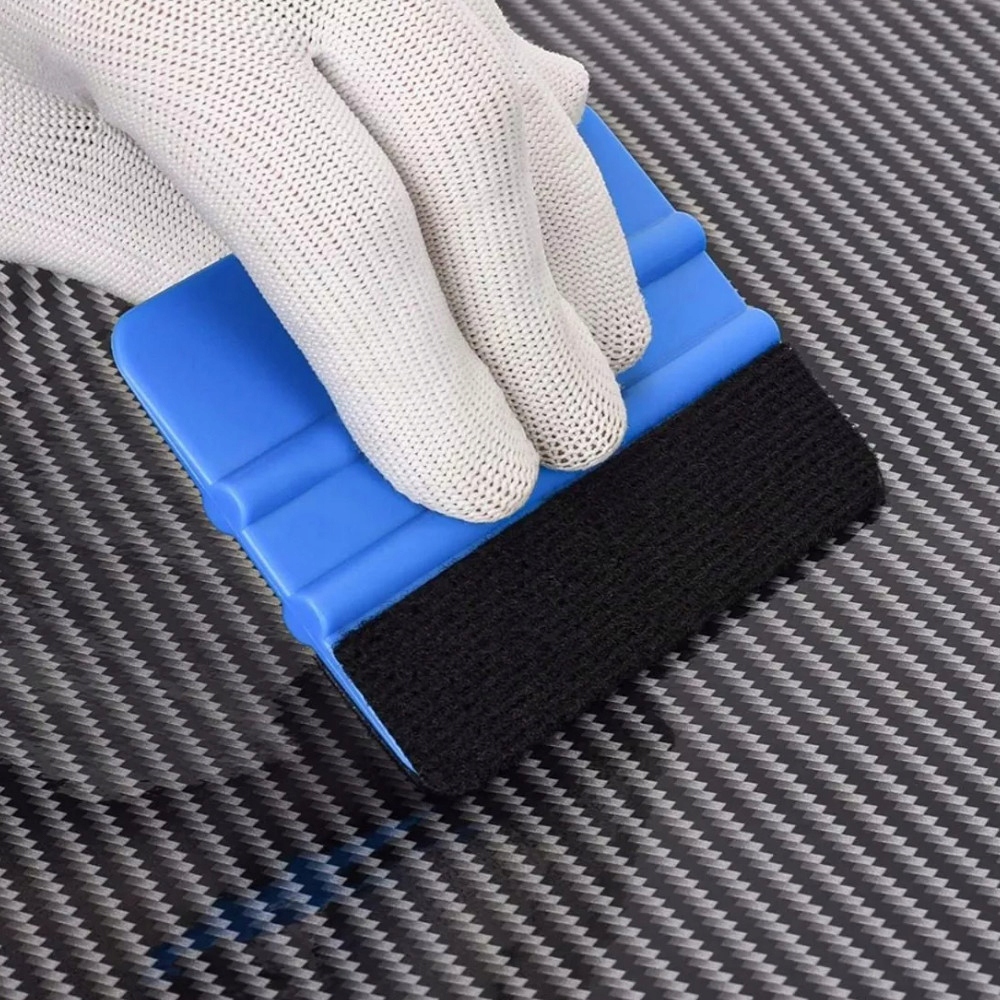 Пластиковий ракель з повстю - дуже корисний при нанесенні фольги та наклейок, в т.ч. видаляючи їх з нижнього шару повітряних бульбашок. Незамінний для обклеювання вікон, капотів, дахів, а також для поклейки карбону та фольги. Він буде використовуватися в багатьох ситуаціях. Один край покритий ніжним фетром - не дряпає поверхню.