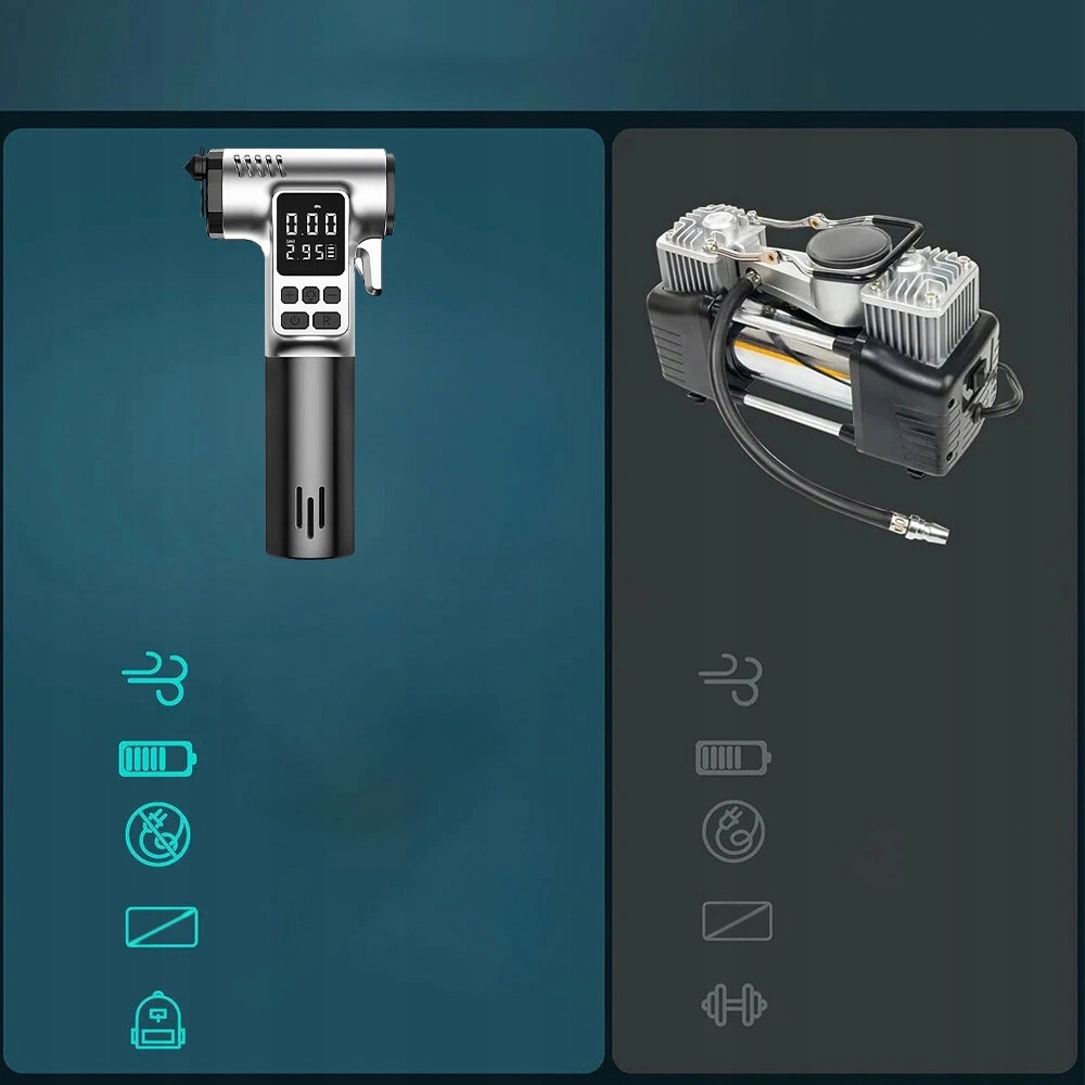 Матеріал: високоякісний матеріал ABS і металевий циліндр, що забезпечує стабільне розсіювання тепла та швидке охолодження під час використання, зменшує шум, забезпечуючи швидке та стабільне наповнення повітрям.