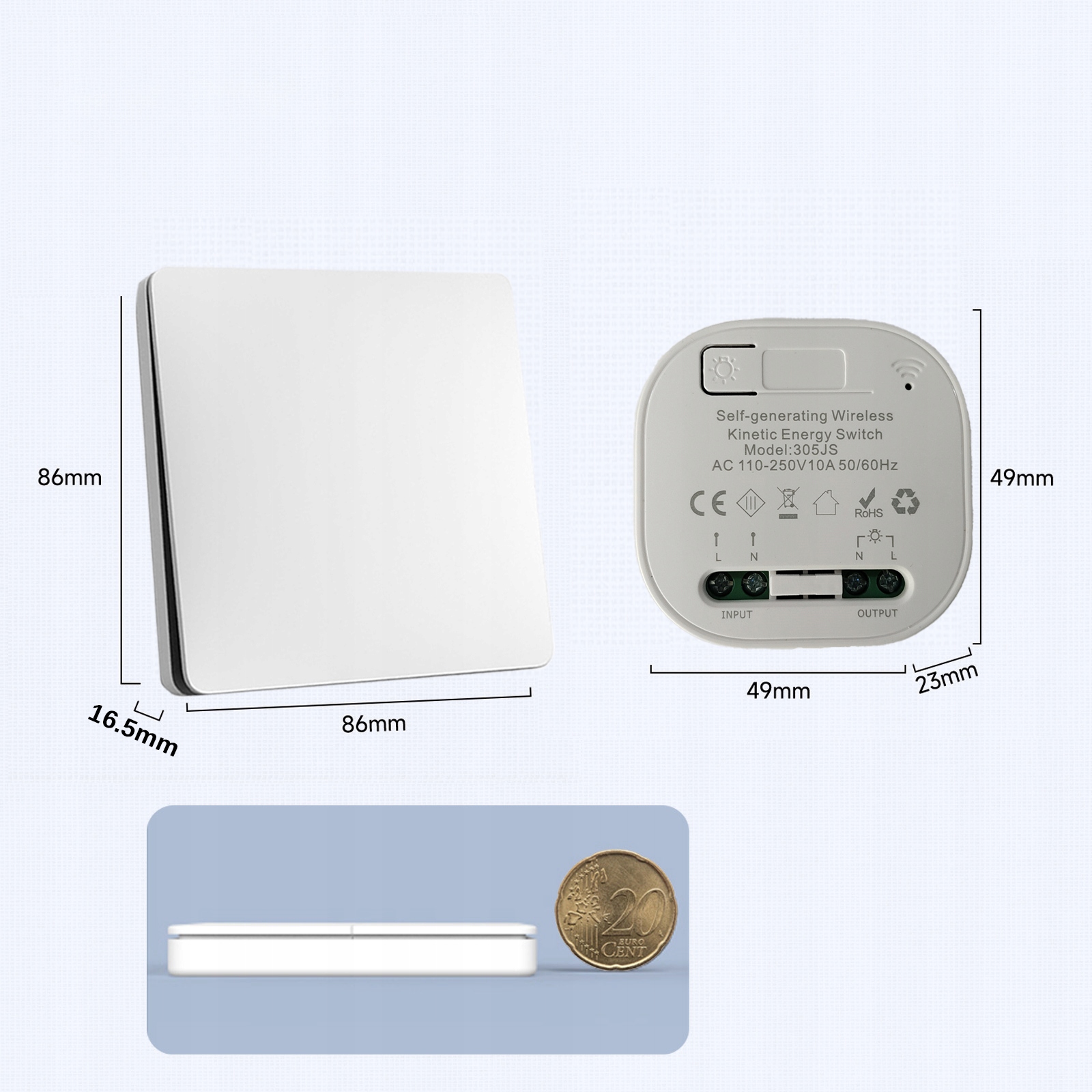 - Це бездротовий перемикач дистанційного керування з власним джерелом живлення, який не потребує акумулятора і може використовуватися відразу після покупки. Зовнішній вигляд прекрасний і елегантний, і це найкращий варіант для комутаторів.