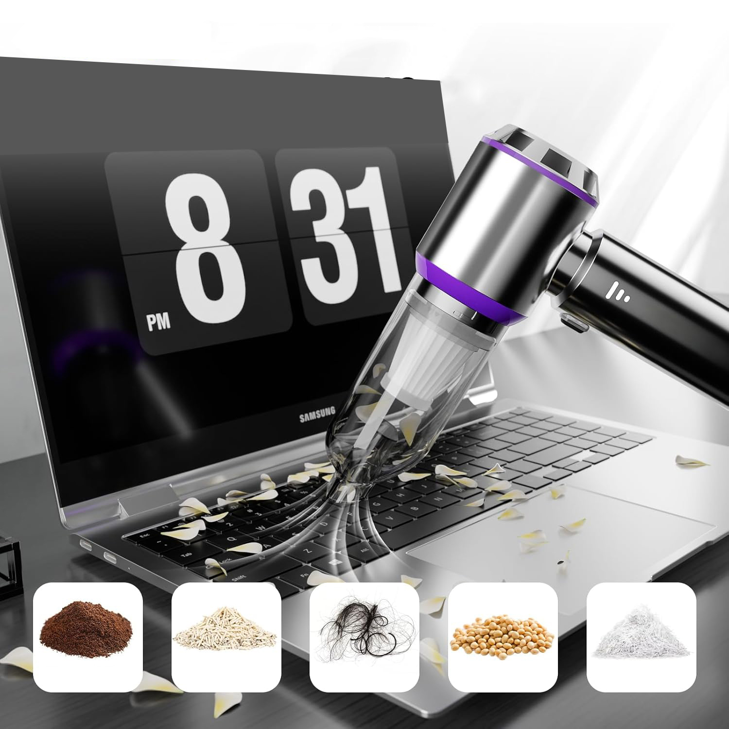 Цей мініатюрний ручний пилосос легкий і має тонку конструкцію для легкого використання, переносимості та зберігання. Бездротова конструкція дозволяє більш гнучко виконувати прибирання вдома або в автомобілі. Його портативність також робить його ідеальним для подорожей або використання на вулиці.