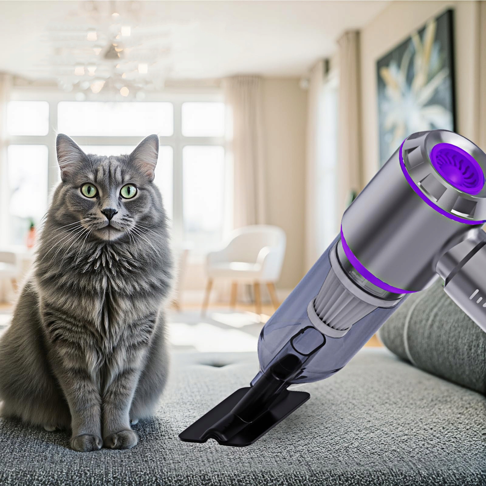 Цей бездротовий автомобільний пилосос оснащено вдосконаленим високошвидкісним безщітковим двигуном для високої продуктивності. Завдяки трьом регульованим режимам всмоктування: 6000 Па, 12000 Па і 16000 Па і високою потужністю всмоктування 16000 Па, цей ручний автомобільний пилосос дозволить вам прибирати шерсть домашніх тварин, крихти, пил і пісок, заховані в автомобільних сидіннях або диванах.