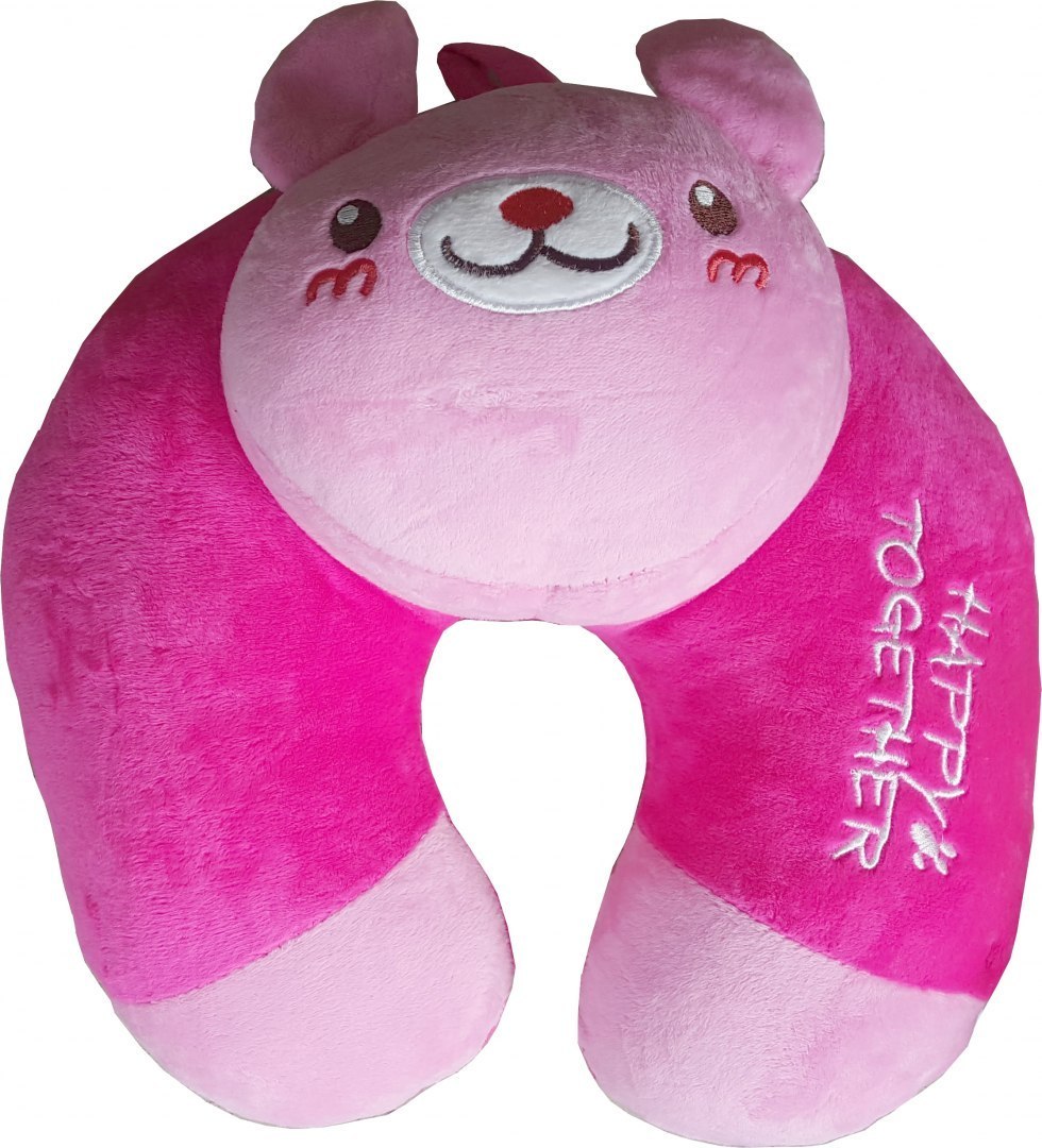 Подушка для шиї у формі круасана виготовлена з приємних на дотик матеріалів із мотивом рожевого ведмедика.