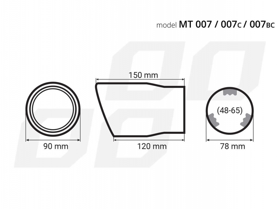 Монтажний діаметр: 48 - 65 мм. Легкий і швидкий монтаж шляхом затягування спеціальних хомутів (після проїзду 500-1000 км перевірте затягування гвинтів).
