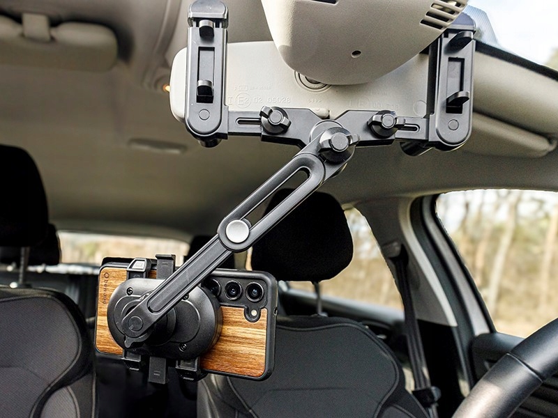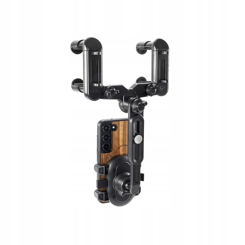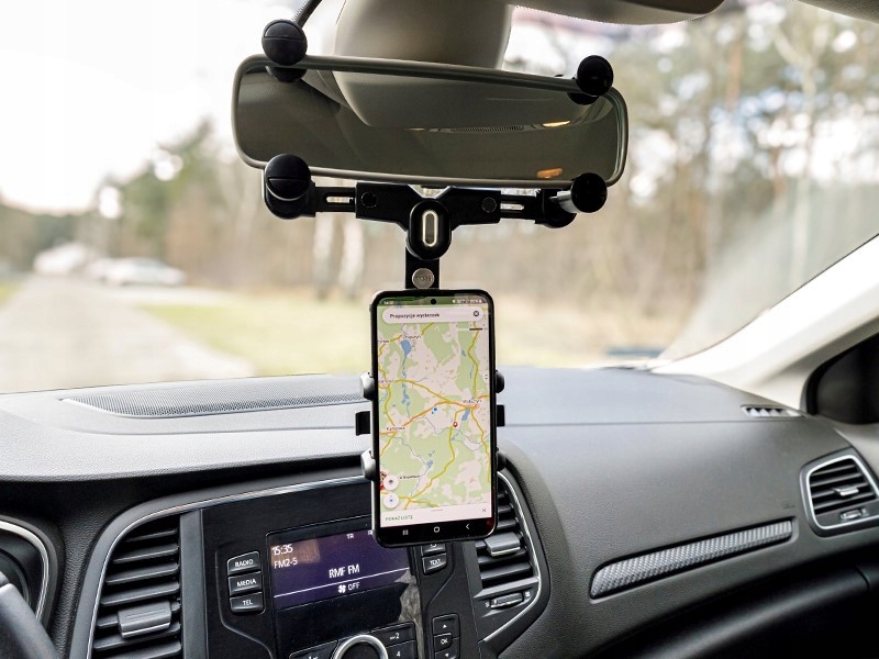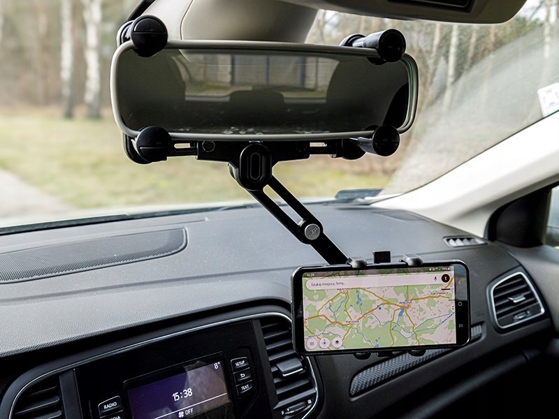 Універсальний тримач автомобілів для мобільних пристроїв. Установка на дзеркалі заднього виду забезпечує належне комфортне обслуговування телефонів від водія. Можливість повного регулювання кута телефону в площині 360 градусів дозволяє його налаштувати, щоб дисплей був ідеально видно. Комфортна регульована рука додатково збільшує комфорт використання. Сумісний із усіма стандартними смартфонами та планшетами.