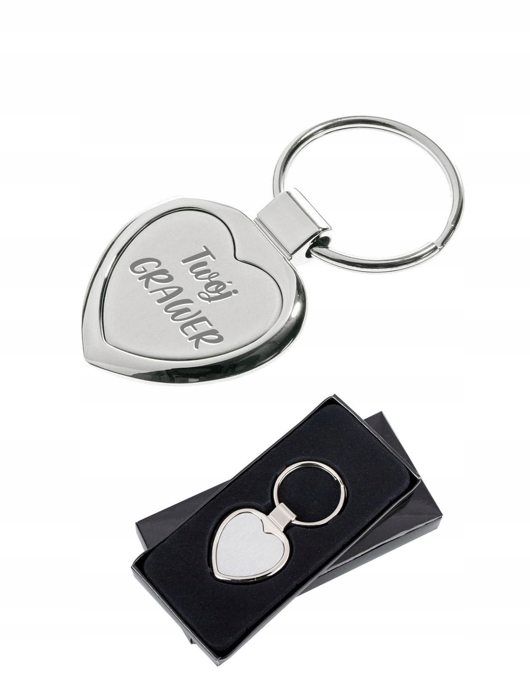 Металевий брелок у формі серця. Упакований в подарункову коробку з чорного картону. Розмістимо логотип на брелоку в техніці лазерного гравіювання.