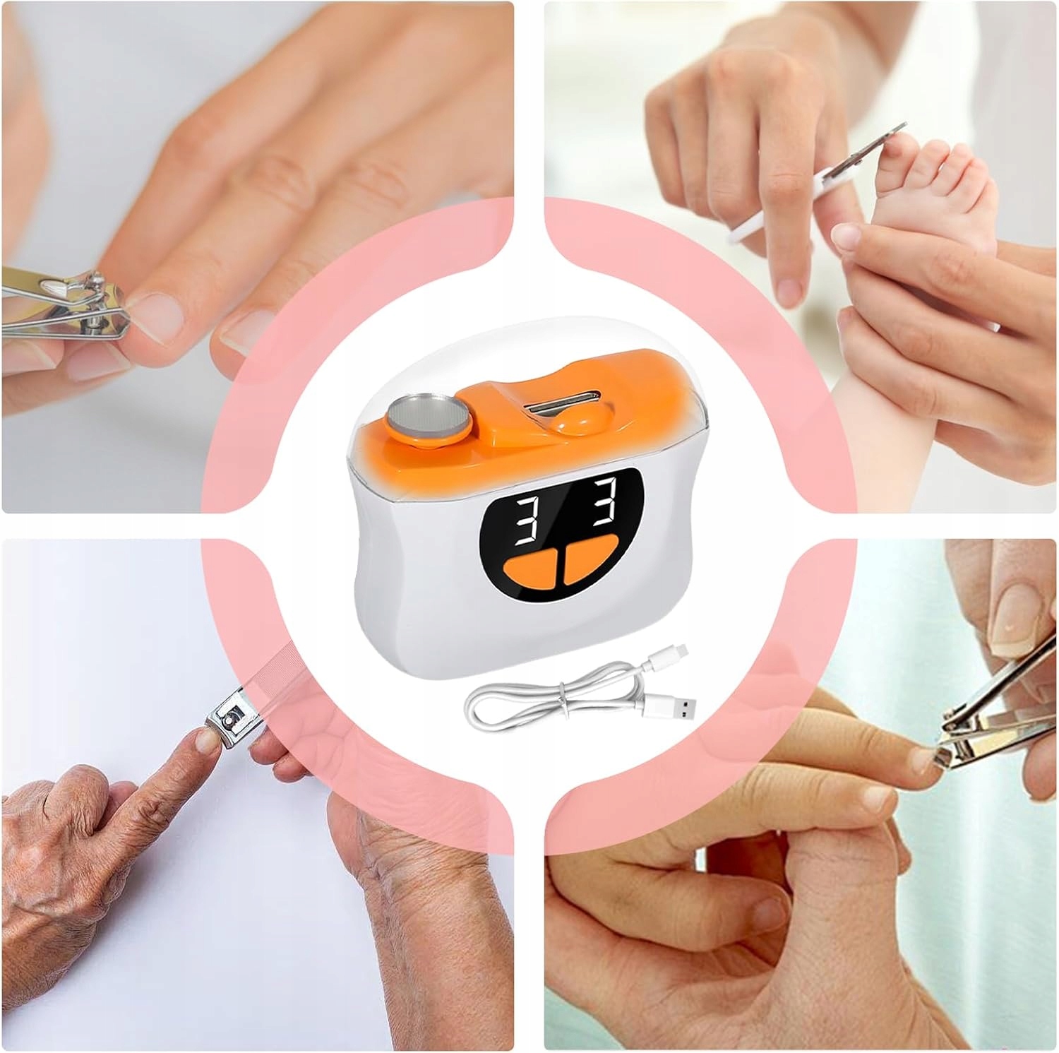 🔆 Світлодіод і тиха робота – вбудоване світлодіодне освітлення полегшує догляд навіть уночі. Тиха робота (40 дБ) означає, що стрижка нігтів не заважає дитині спати.