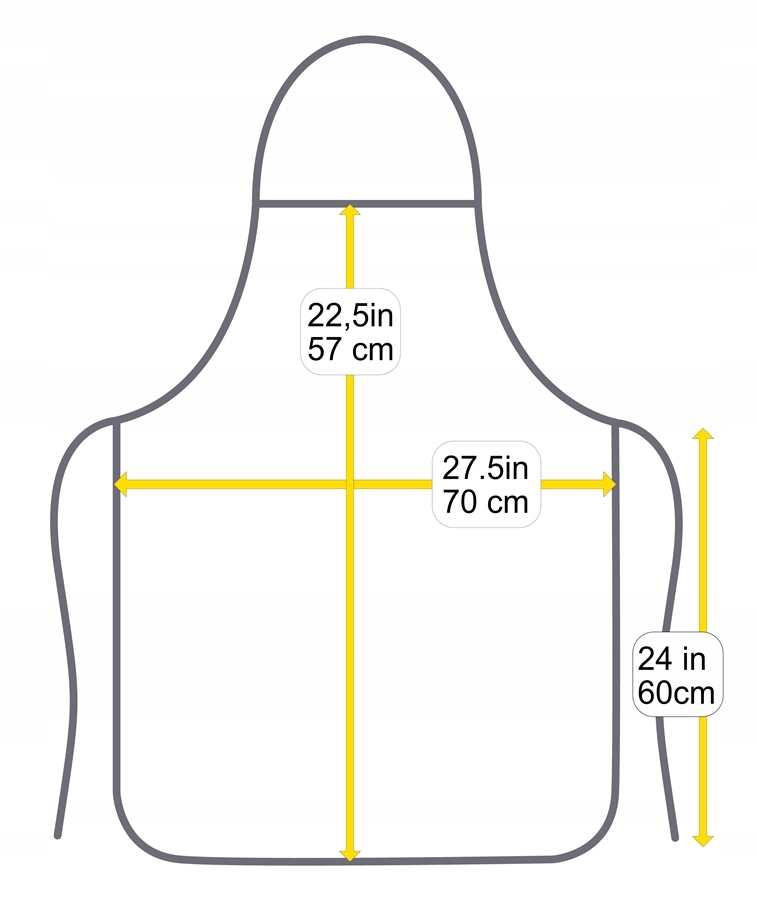 Розміри фартуха: довжина 70 см, ширина 57 см, ззаду зав'язується зав'язками, довжина 60 см.
