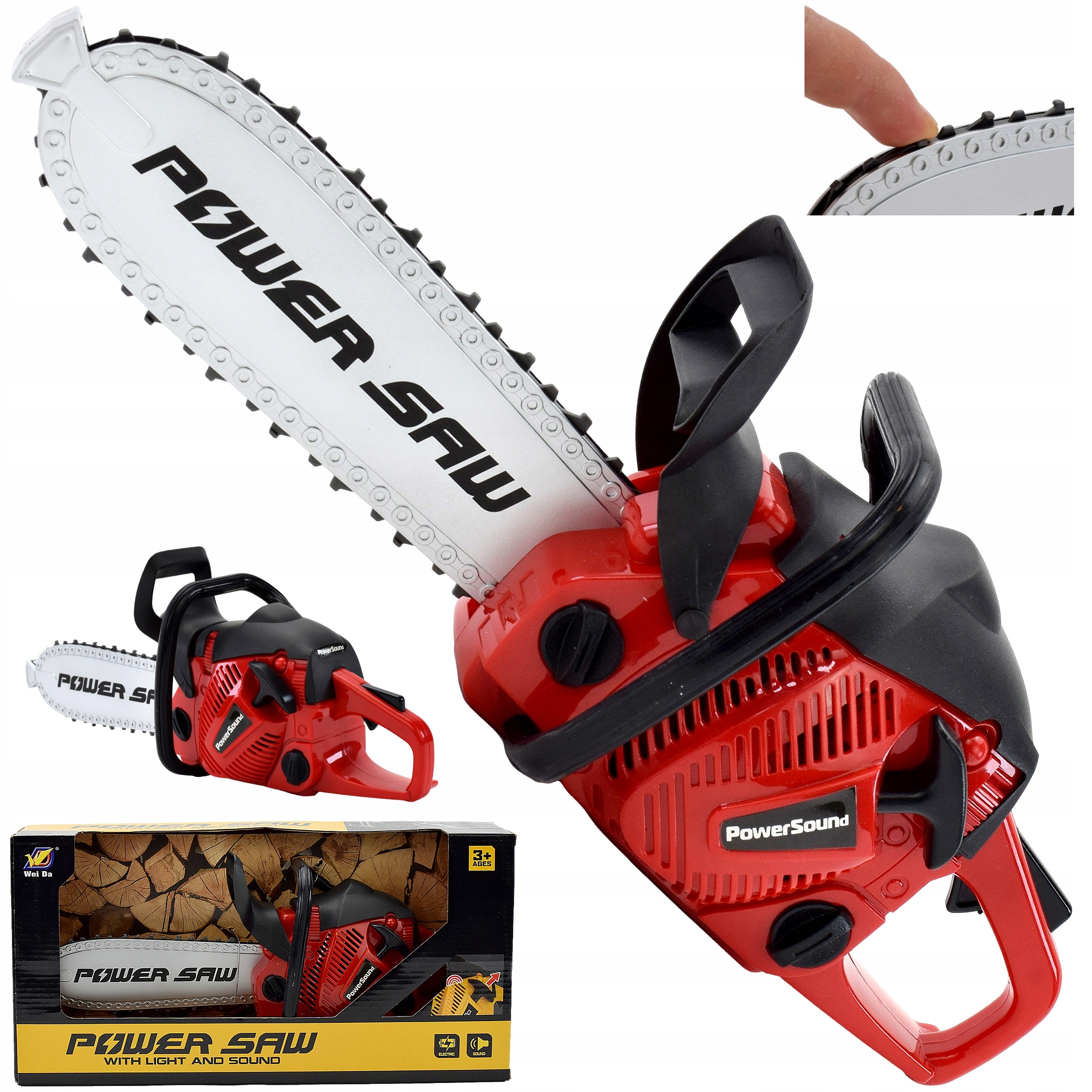 - Пила має безпечний гумовий ланцюжок, щоб дитина не завдала шкоди собі чи іншим під час гри, а також не знищила обладнання в нашому домі під час гри.