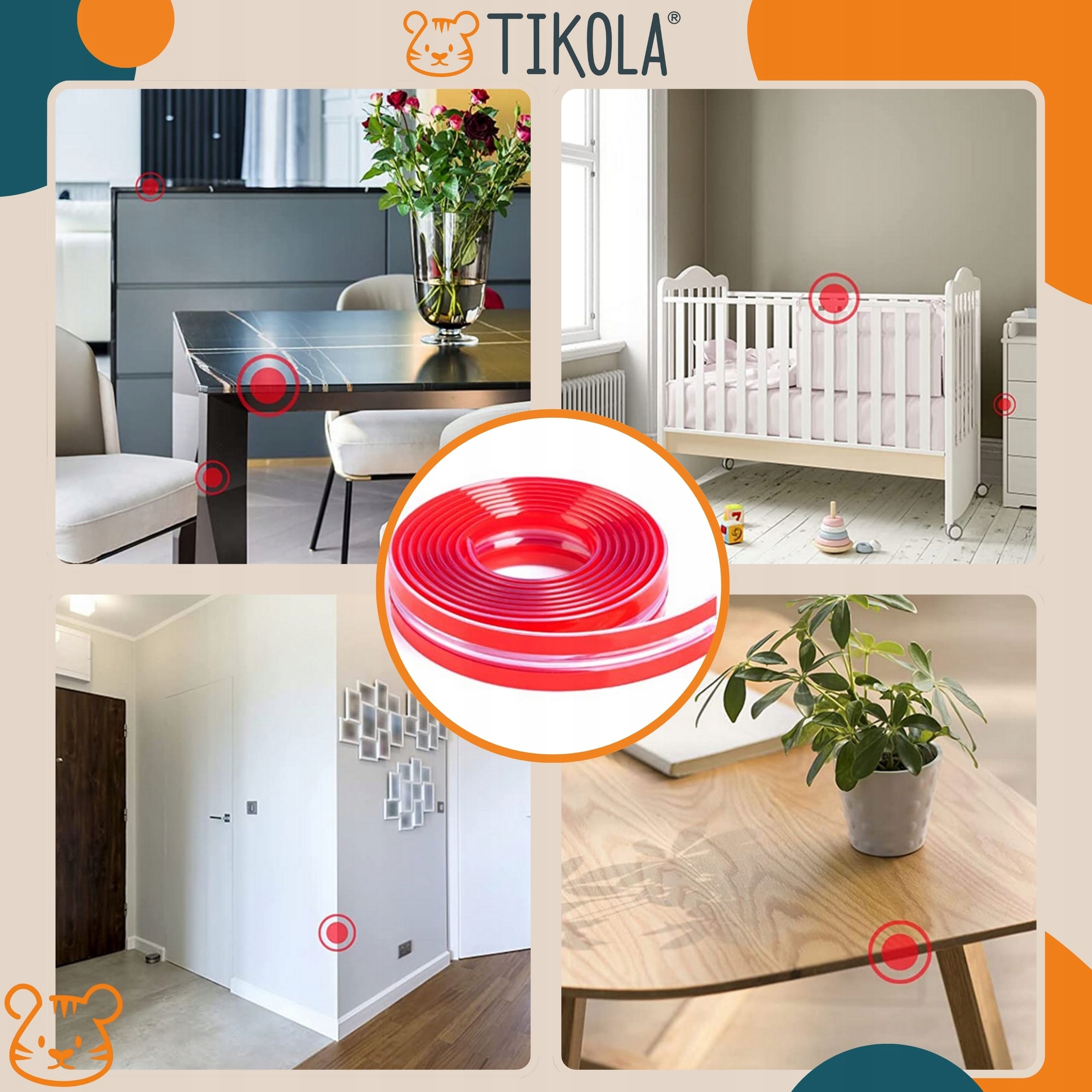 М’який ПВХ м’яко поглинає удари, а завдяки скотчу 3M надійно тримається на будь-якому предметі меблів.