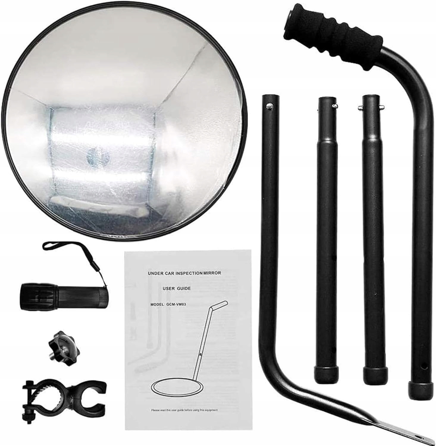 Сфера застосування Це ідеальний інструмент для перевірки сліпих зон на будівельному майданчику, перевірки автомобілів, шасі, машинних валів, вантажівок, шкільних автобусів, поїздів, будівельного та промислового обладнання. Регульована Використовуйте високоякісну алюмінієву конструкцію довжину телескопічної палиці можна регулювати в межах 50100 см діаметр збільшеного дзеркала на 2 шт. становить 30 см нижній універсальний шків може вільно обертатися Світлодіодні ліхтарі 9 ліхтарів можна легко перевірити на наявність витоків і пошкоджень під диван за холодильником під сидінням автомобіля і під ліжком. Його також можна використовувати зазвичай у темних умовах для покращення ефективності освітлення. Вибір матеріалу Міцне, небитке опукле дзеркало, опуклий ефект подвійного збільшення, хороша міцність, безпека та довговічність, яке нелегко зламати, кругле дзеркало. Залізний нижній затискач ефективно запобігає зіткненню та пошкодженню дзеркала. Зручний і портативний. Невеликий розмір, легка вага, без місця та міцний, оснащений сумкою для транспортування. Після використання складіть ручку та покладіть у сумку