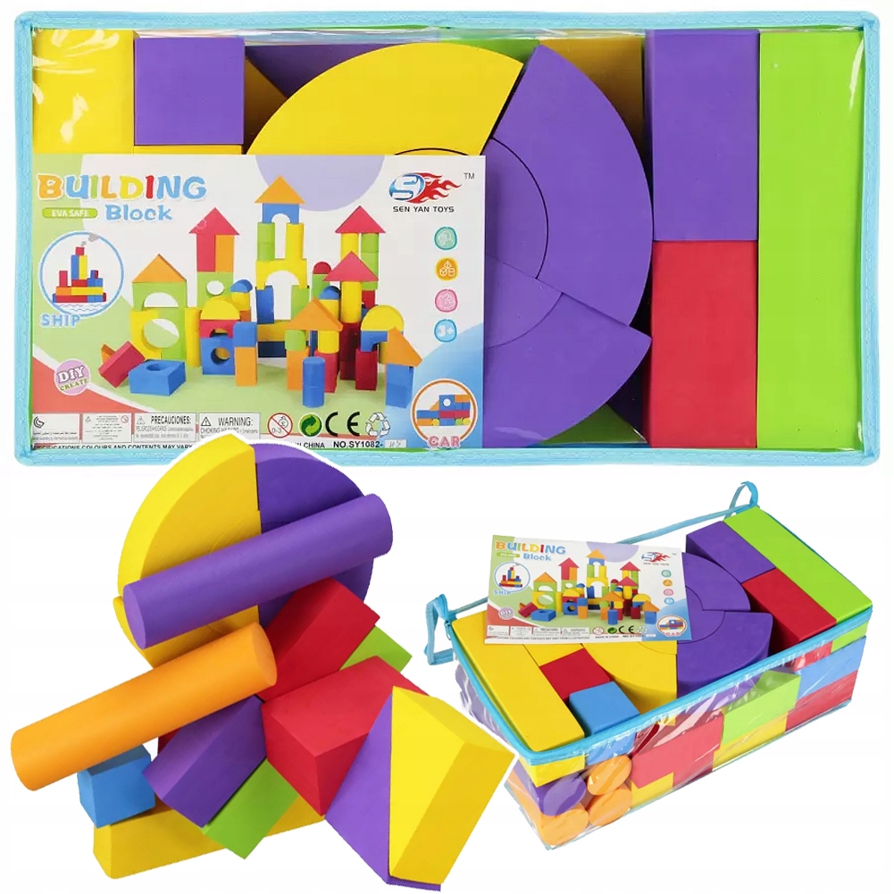 Набір містить: 48 різнокольорових блоків різної форми. Вироби з екологічно чистого м'якого поролону.