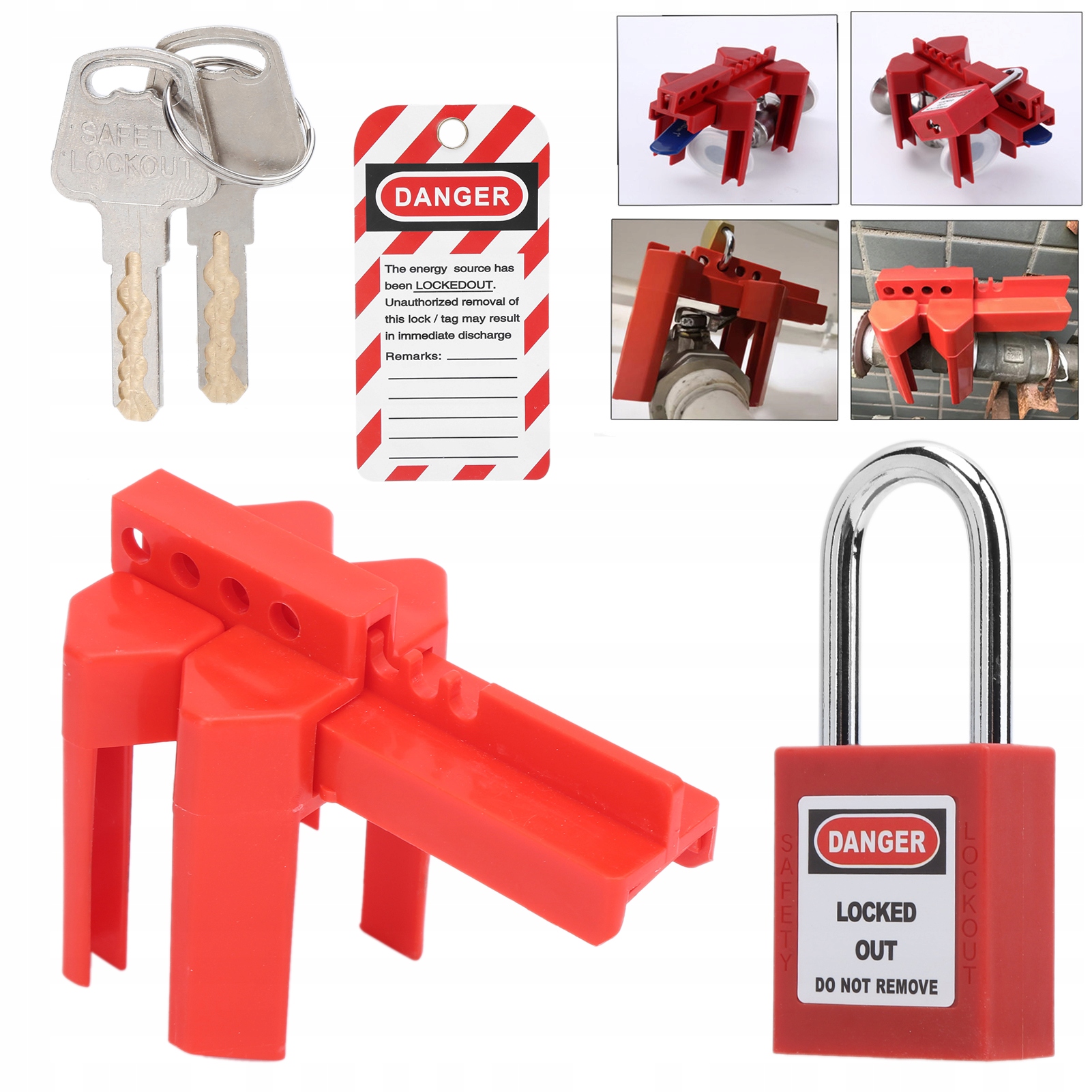 4. Відповідний діаметр труби становить прибл. 13 - 64 мм/0,5 - 2,5 дюйма. Включає 1 замок, 1 попереджувальну табличку, 1 замок з кульовим краном, 2 ключі.